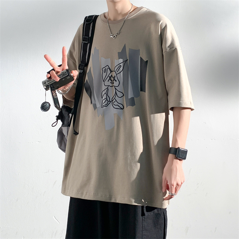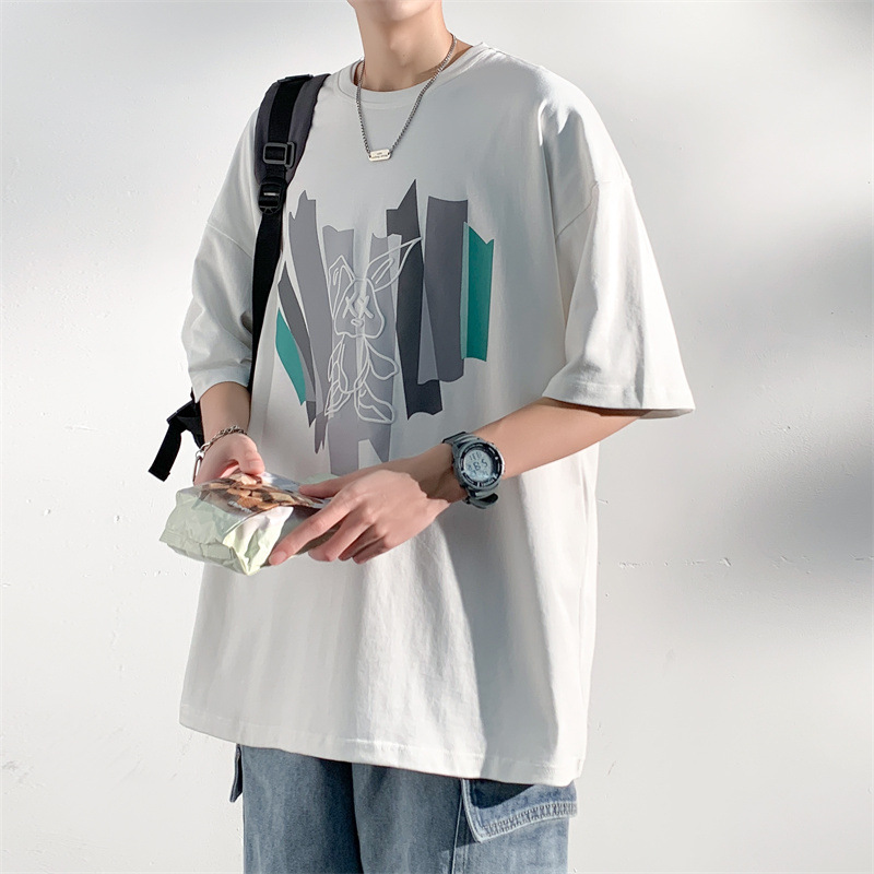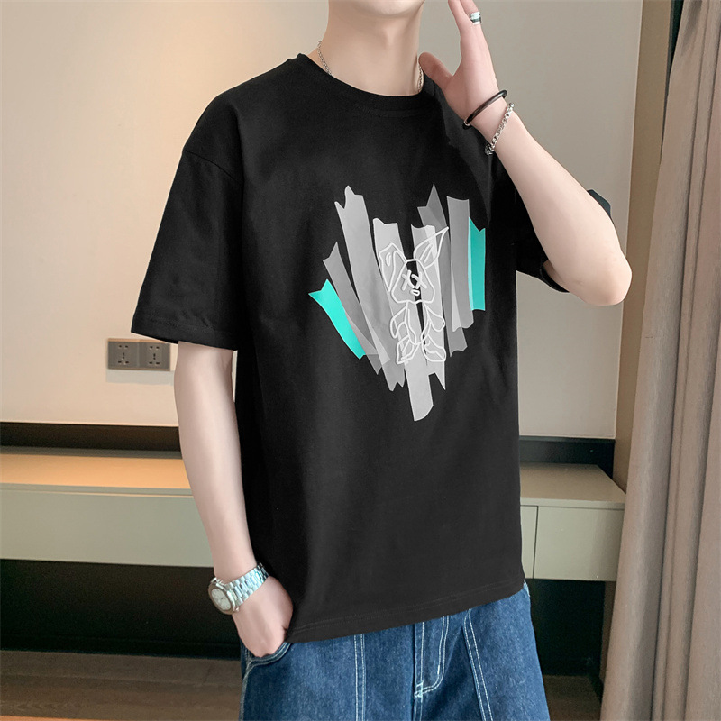 美式设计感印花T恤男士夏季薄款潮牌帅气速干短袖宽松重磅上衣服