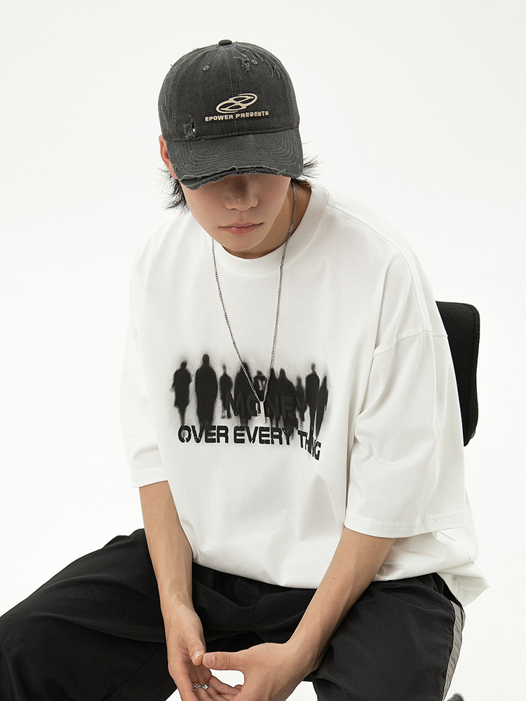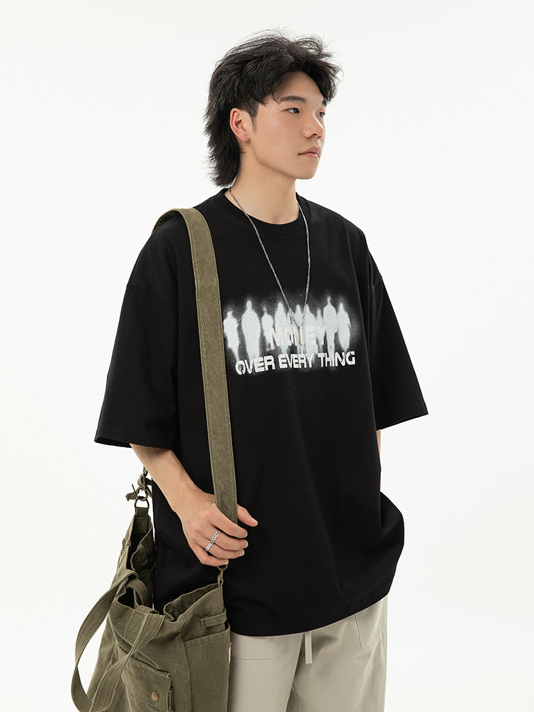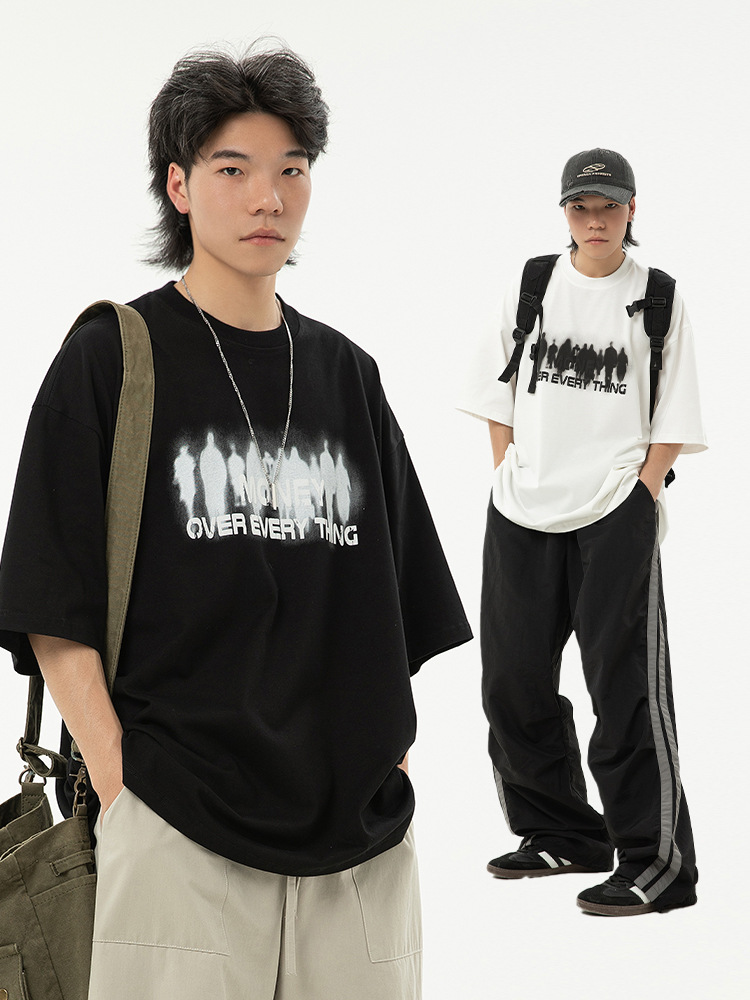 美式高街设计感印花T恤男春夏新款圆领纯棉潮牌情侣同款短袖体恤