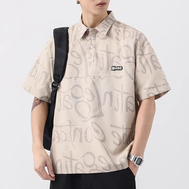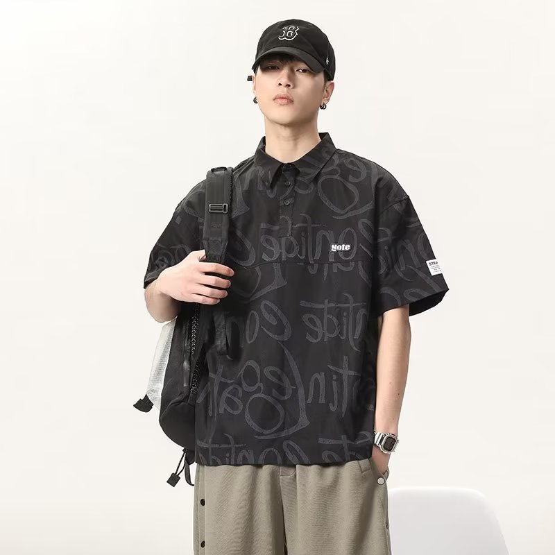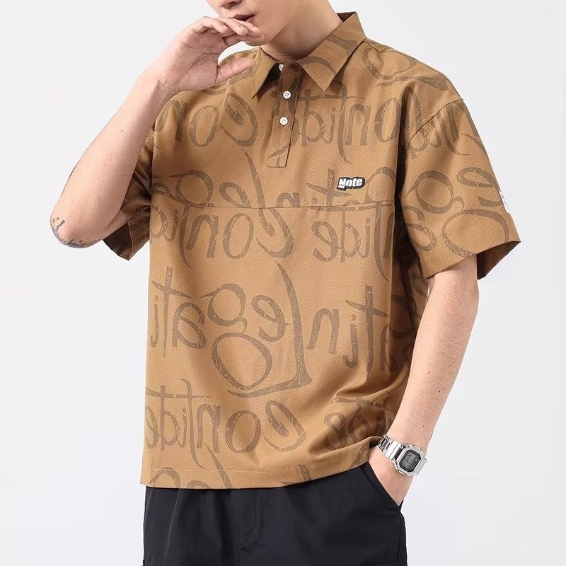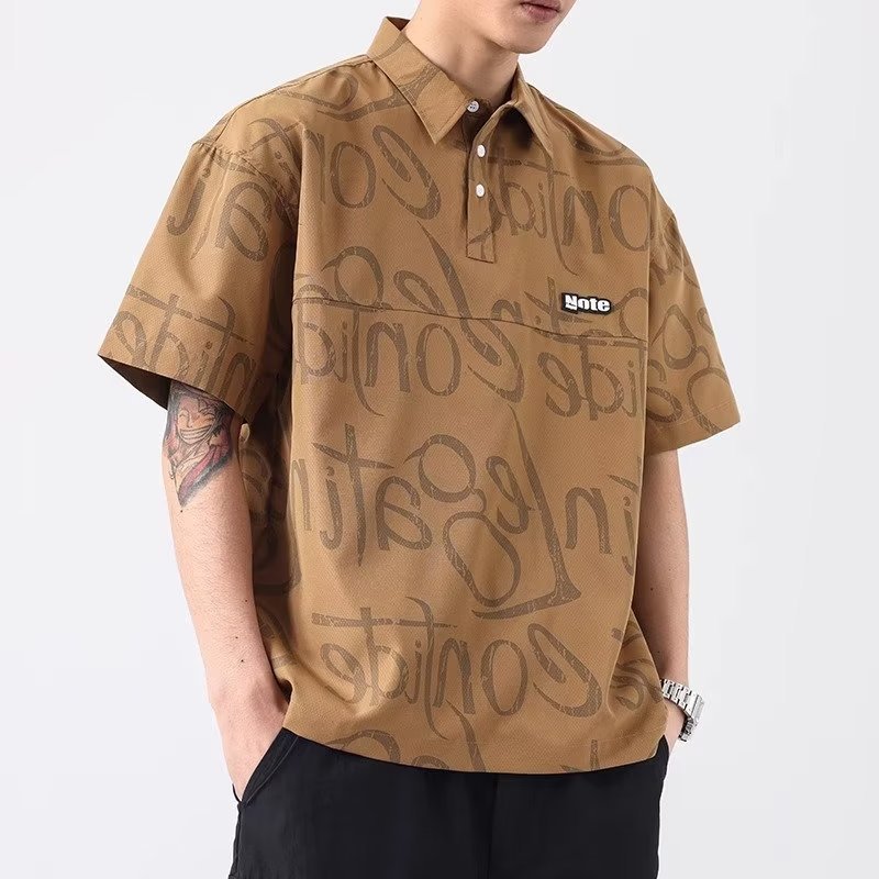美式复古短袖男款polo衫夏季设计感工装T恤痞帅高级感五分袖上衣
