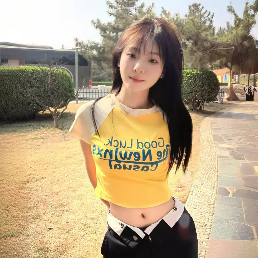纯棉美式插肩短袖t恤女设计感小众别致独特短款纯欲辣妹风上衣夏