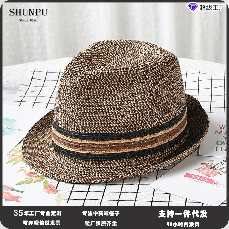 男夏季草帽出游海边度假遮阳帽防晒沙滩帽爵士小礼帽巴拿马帽子潮