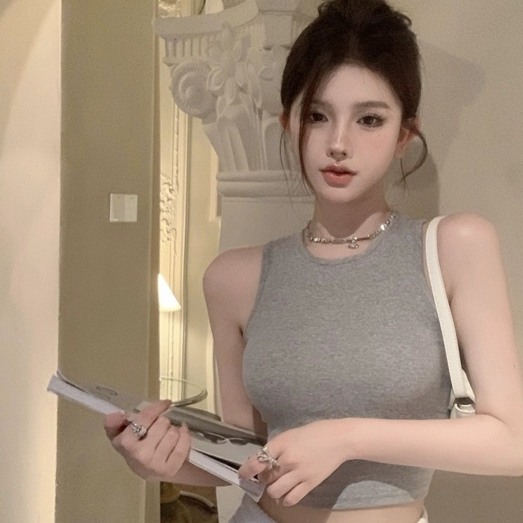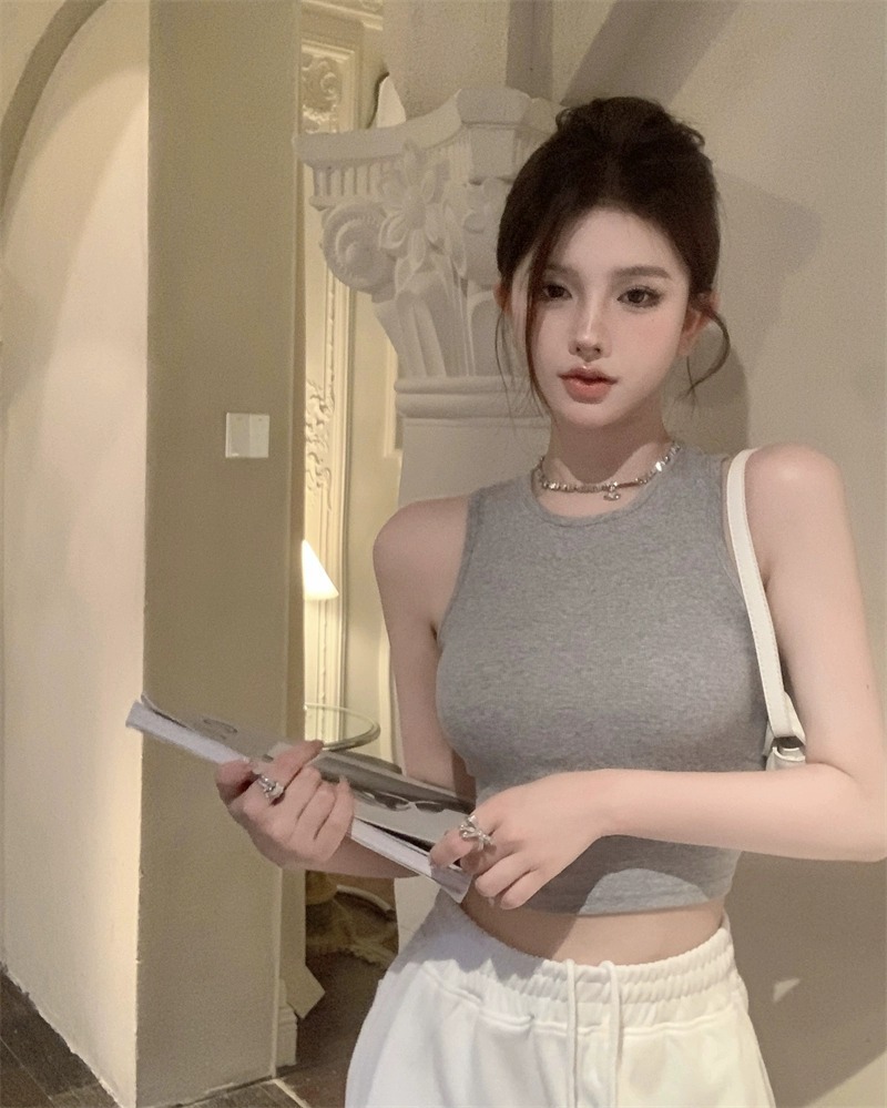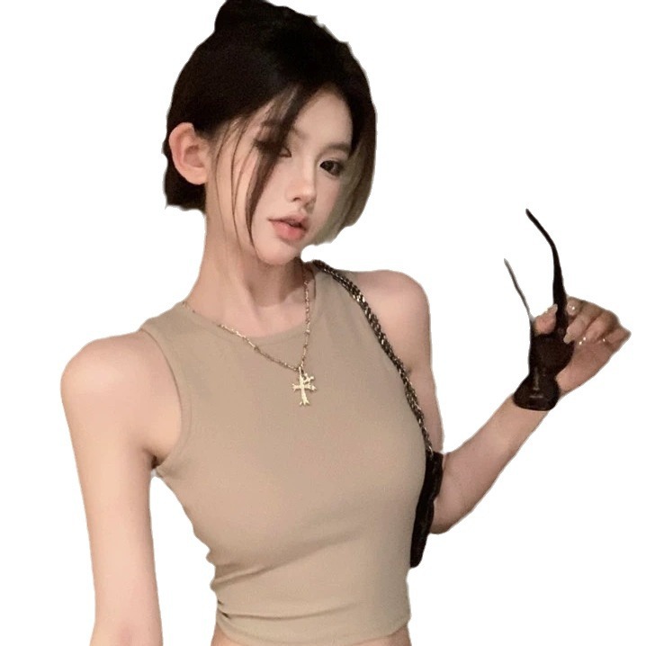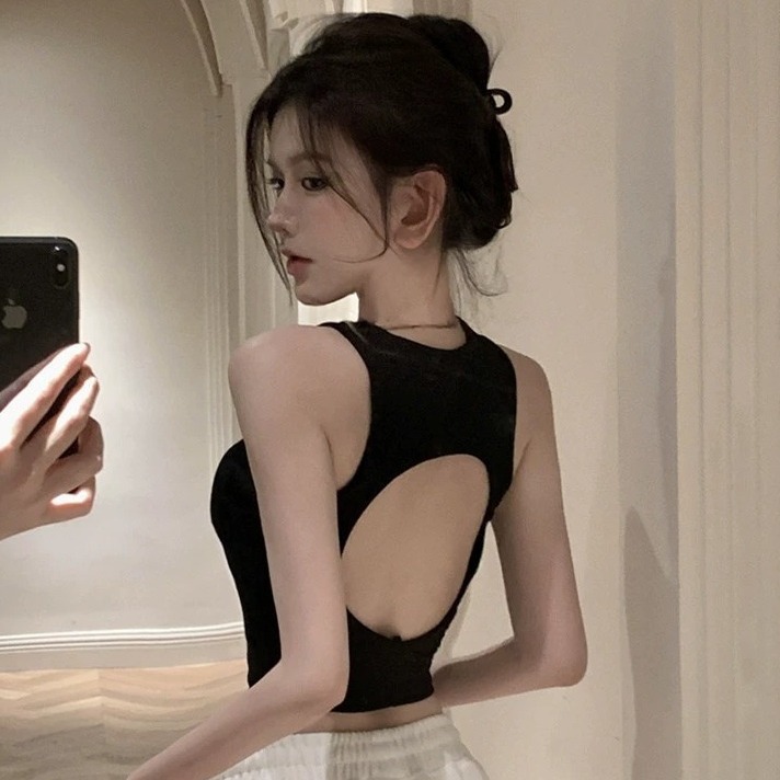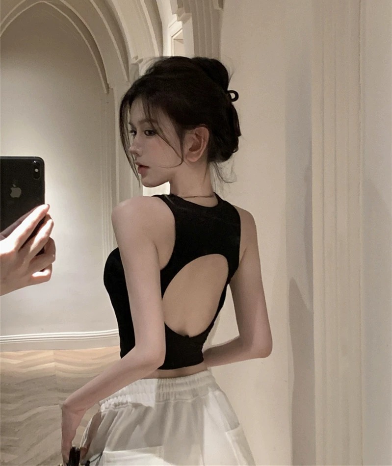 辣妹镂空露背工字小背心女夏无袖紧身黑色打底衫内搭短款上衣外穿