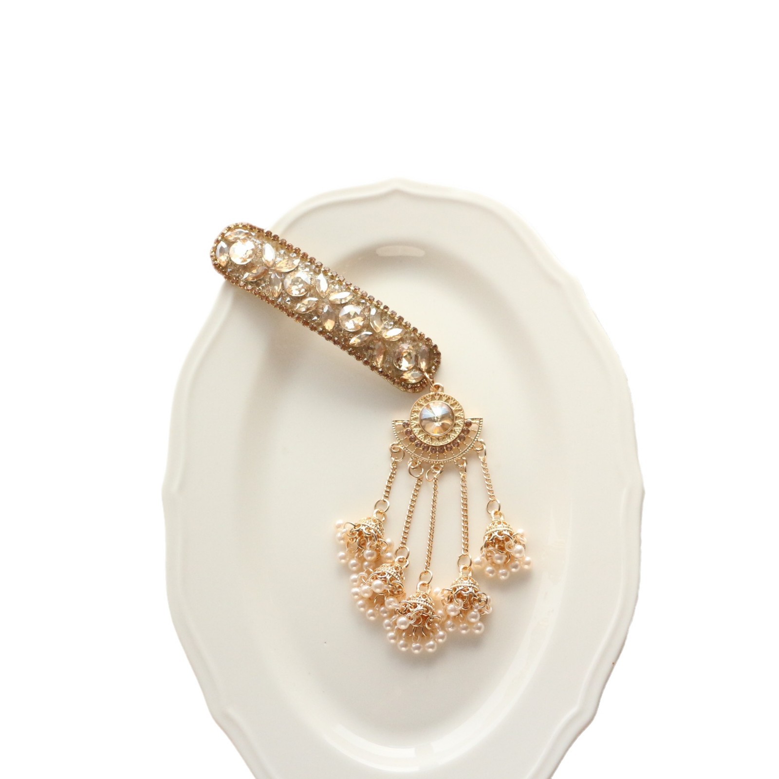满钻珍珠流苏发夹拜拜夹气质女生百搭BB夹发饰复古名媛飘逸