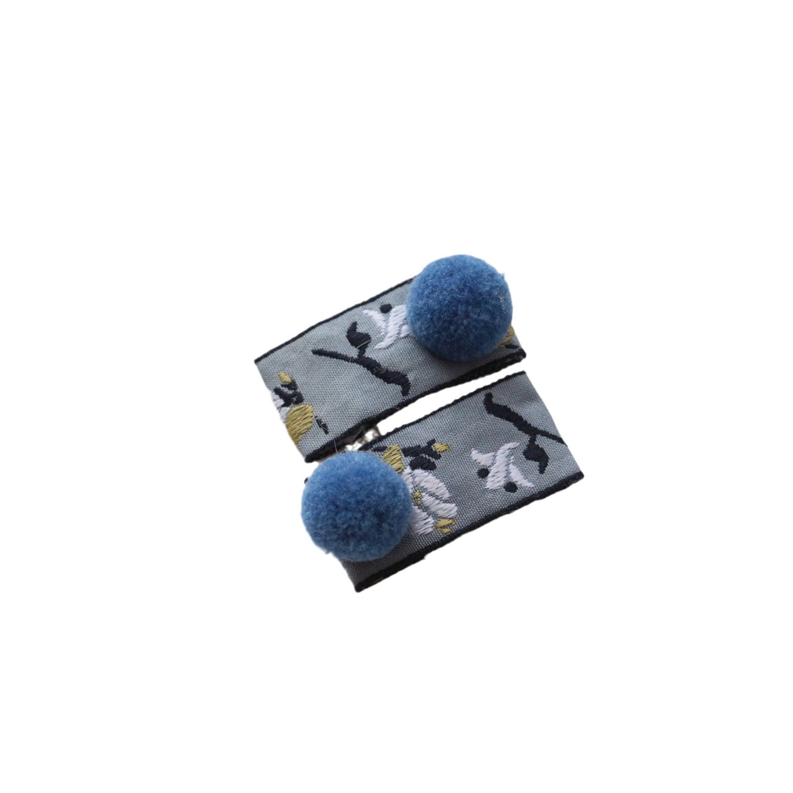 复古国风蓝色刺绣花朵发夹刘海侧边对夹BB掰掰夹可爱儿童百搭发饰