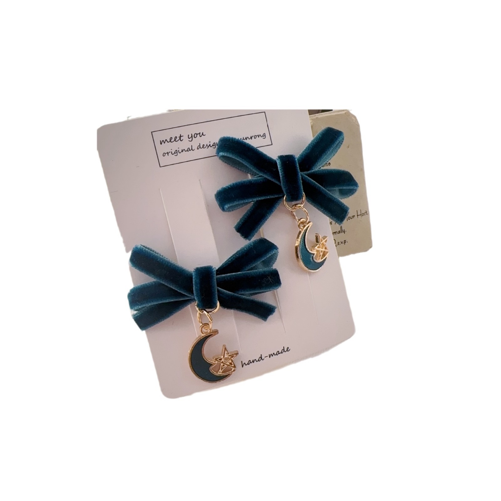 靛蓝色蝴蝶结鸭嘴夹一对(左右各一)
