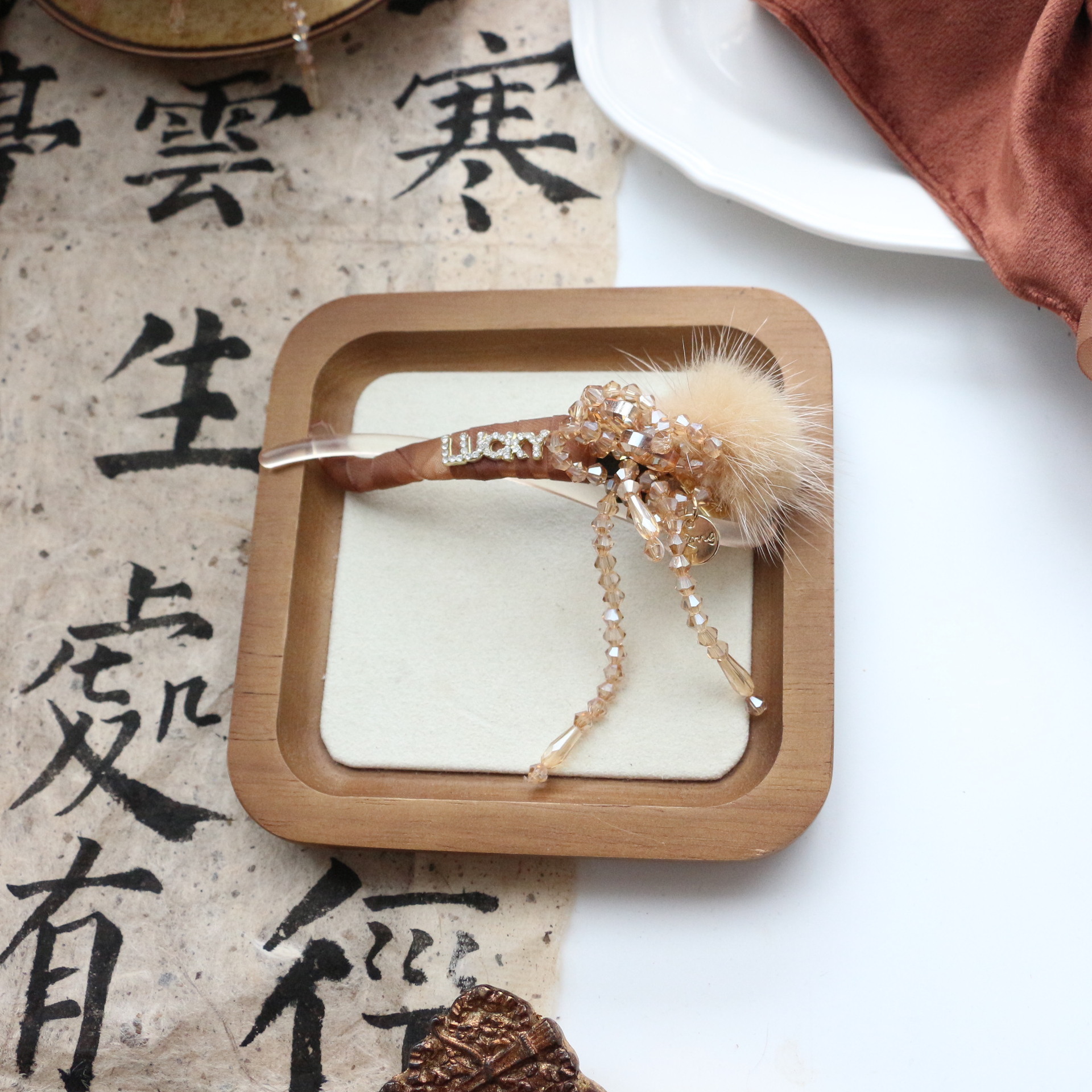水晶珠流苏扭扭夹