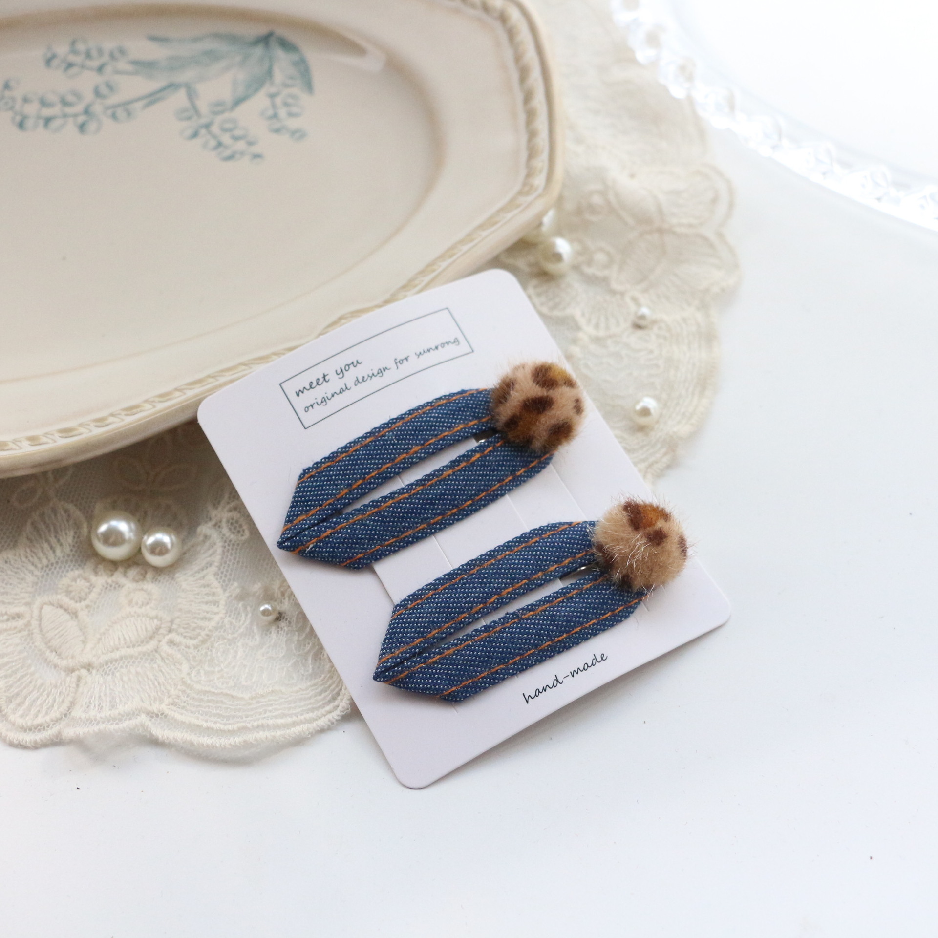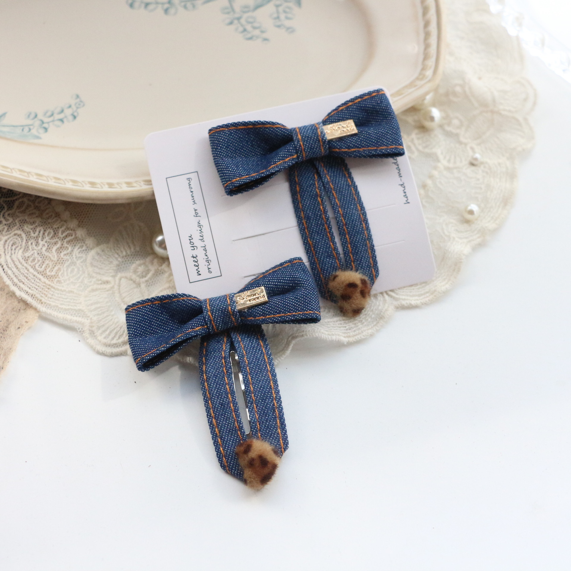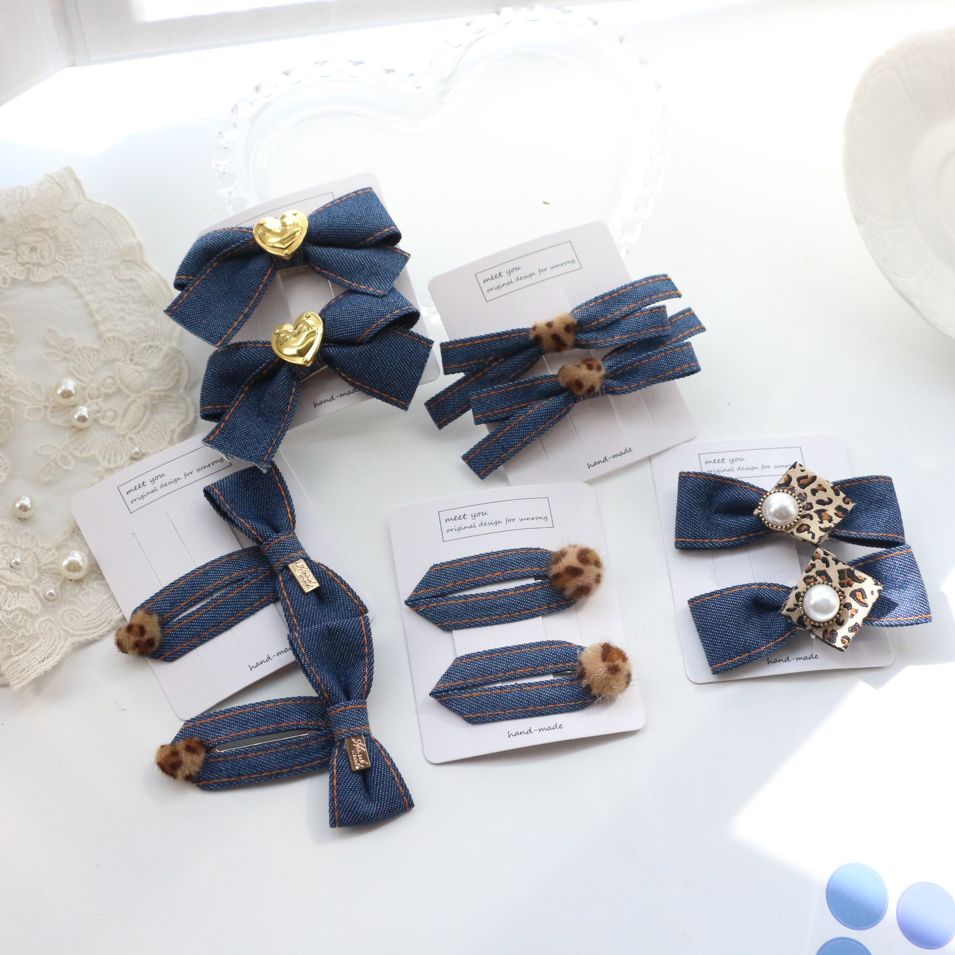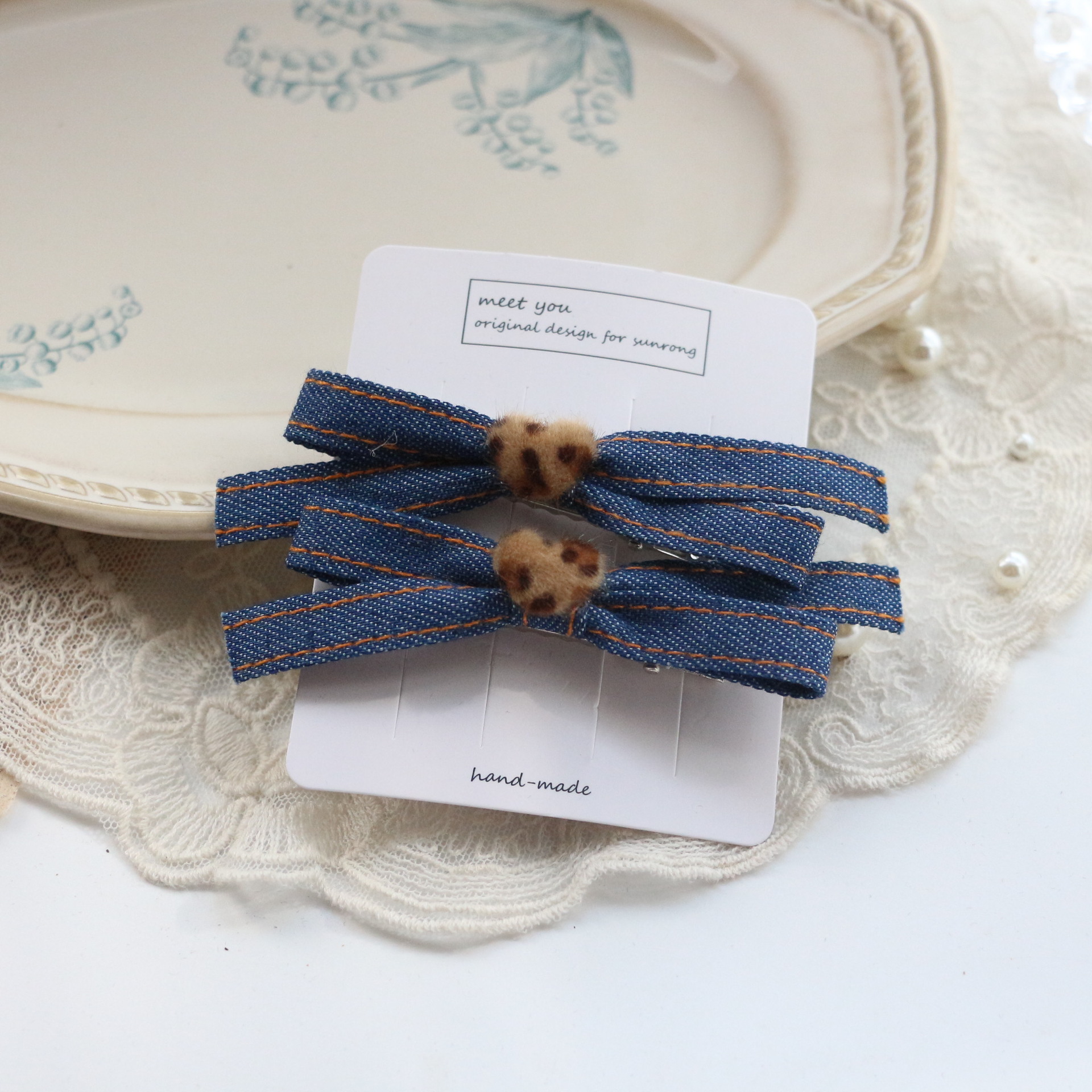 爱心牛仔蝴蝶结鸭嘴夹一对