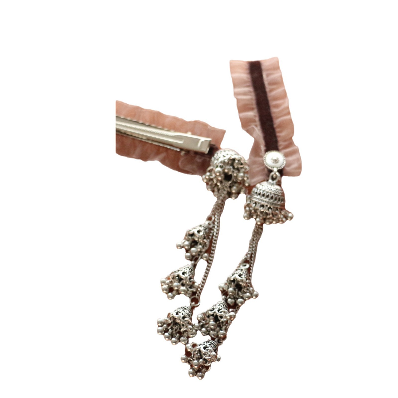 网红款刘海国风花边丝绒流苏吊坠铃铛鸭嘴夹复古前卫头饰咖啡色