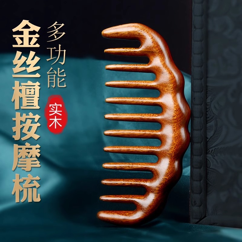 木梳金丝檀大齿天然卷发梳宽齿男女脱发木头家用头部按摩梳子便捷