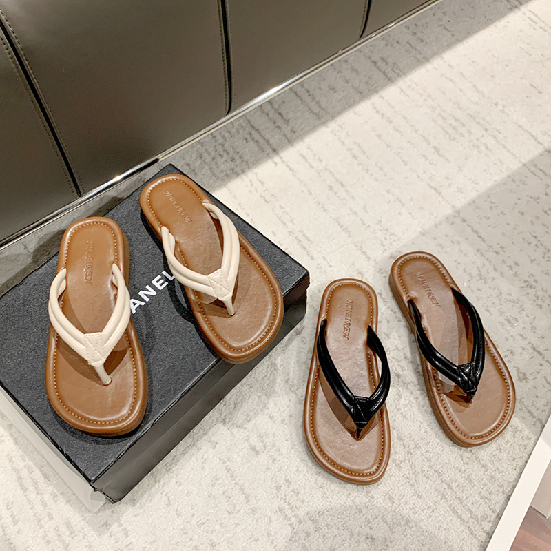 2025年新韩版百搭人字拖女夏户外穿时尚拼色平底夹脚凉拖鞋沙滩鞋