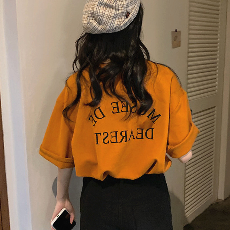 网红气质打底衫女韩版宽松休闲学生上衣夏短袖圆领印花t恤女