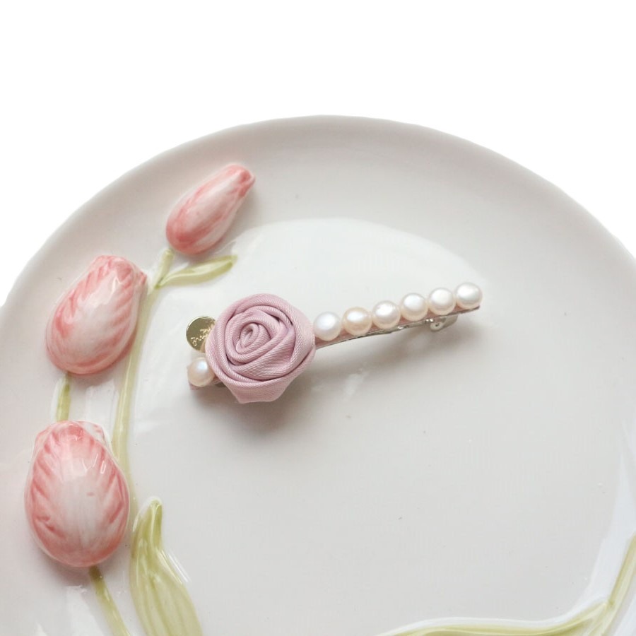 粉玫瑰珍珠弹簧夹