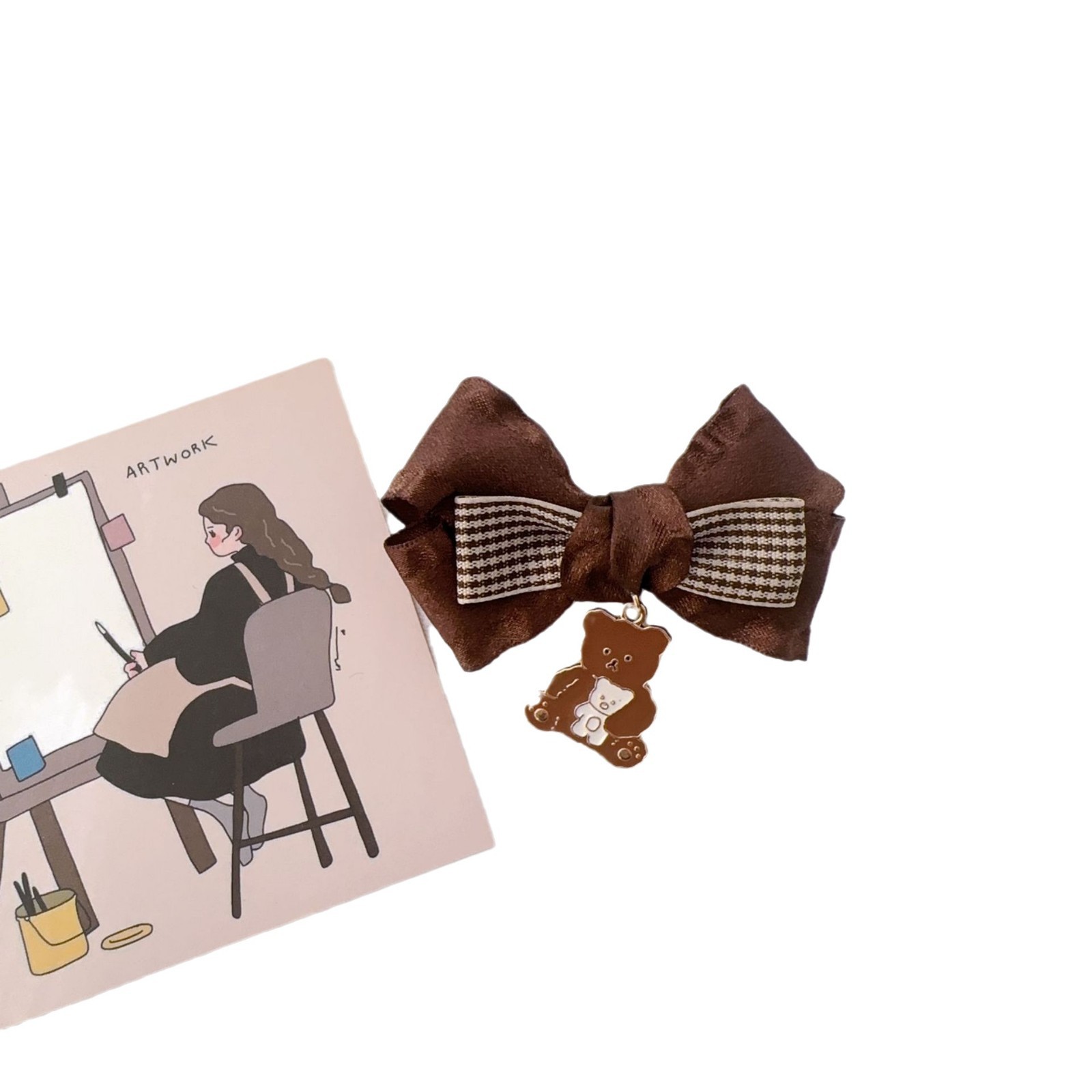 可爱奶茶色蝴蝶结公仔发夹发圈鸭嘴夹侧边碎发对夹百搭