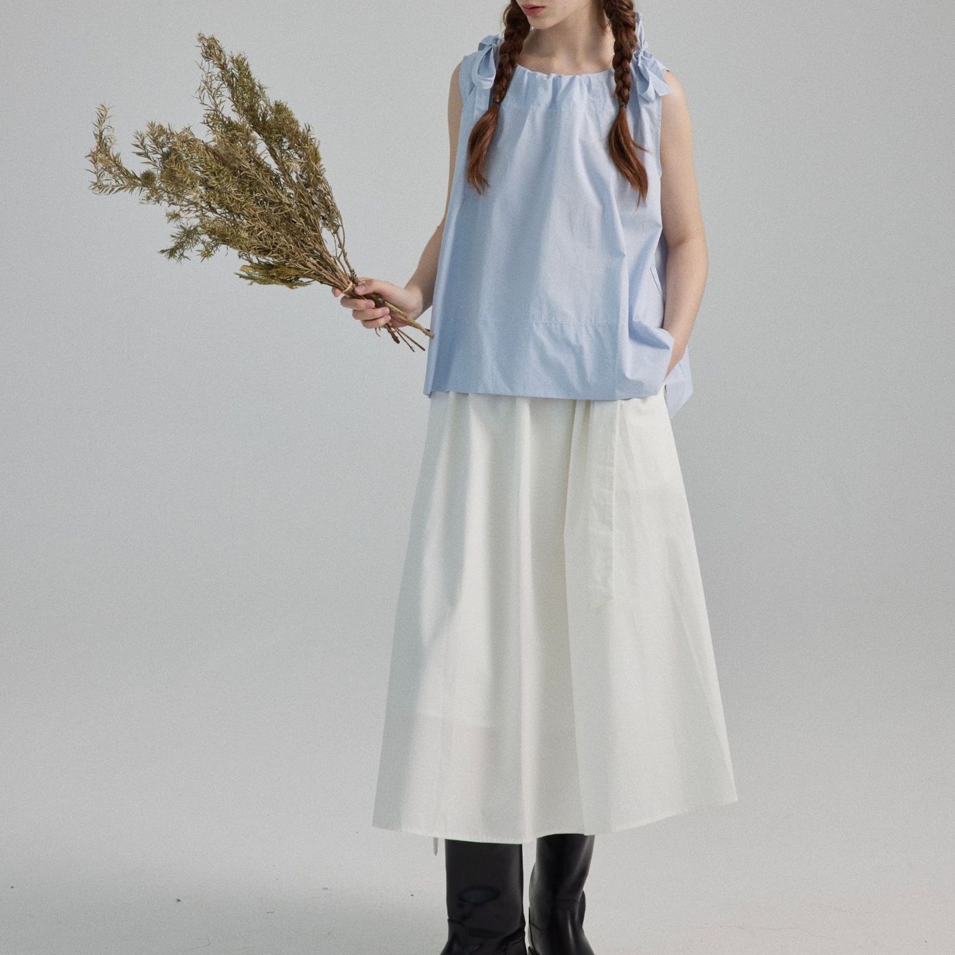 海盐蓝女士简约抽绳夏季清凉感上衣宽松绑带背心