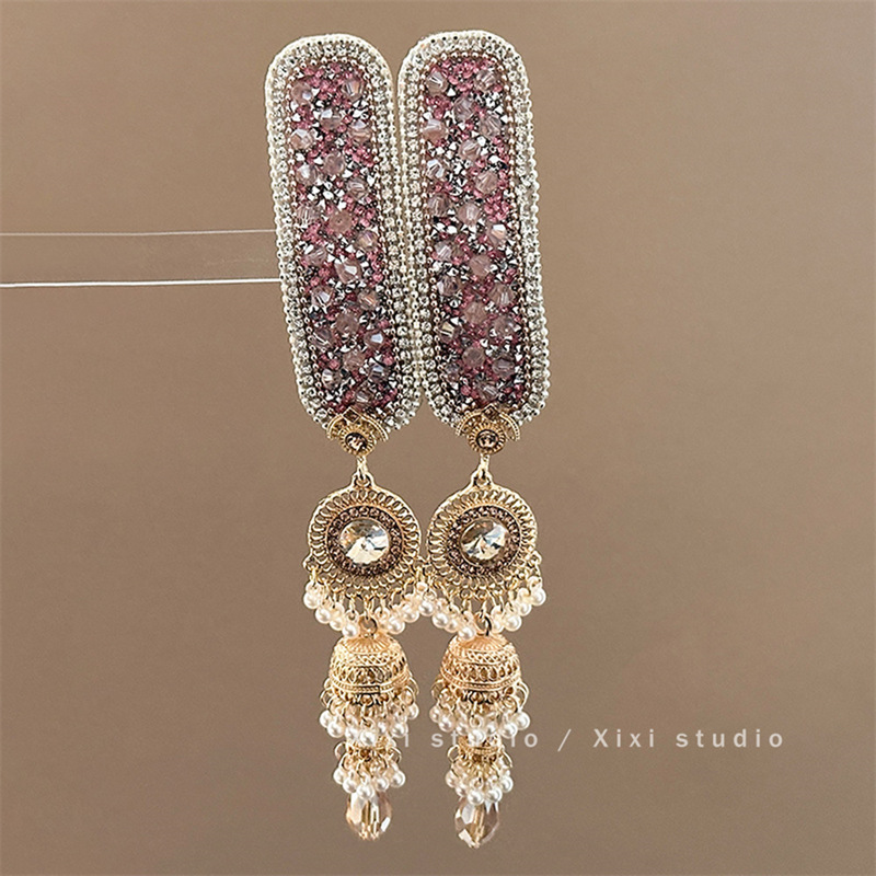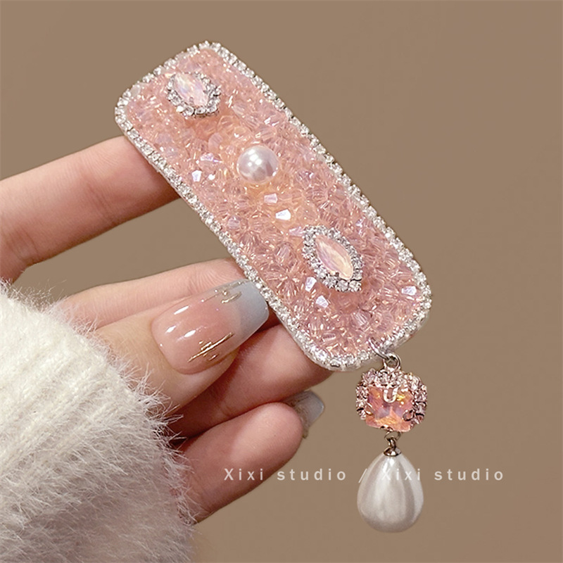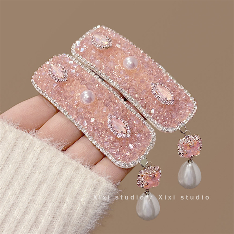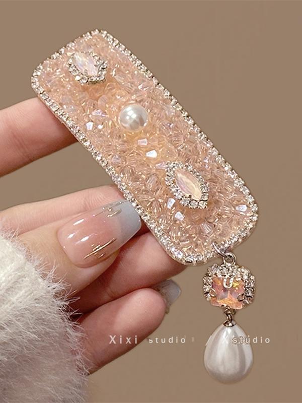 粉色水钻浅粉宝石珍珠吊坠发夹