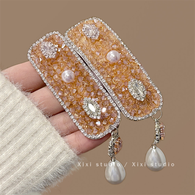 橘色水钻透明宝石珍珠吊坠发夹