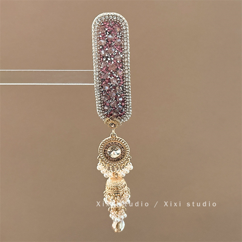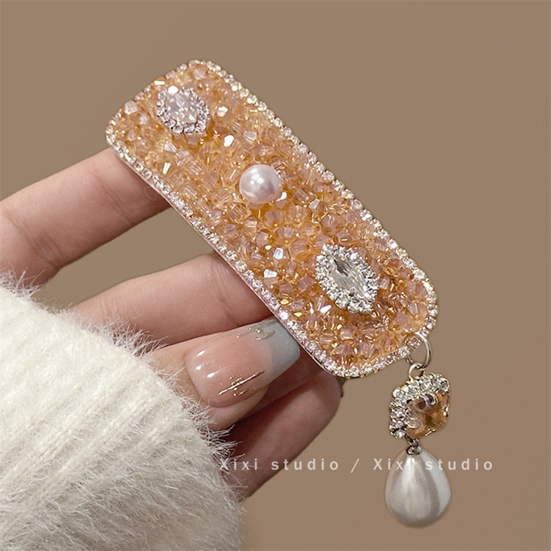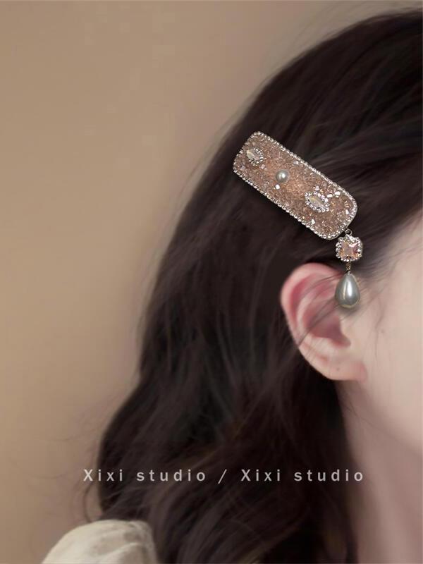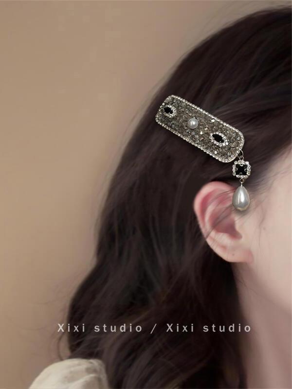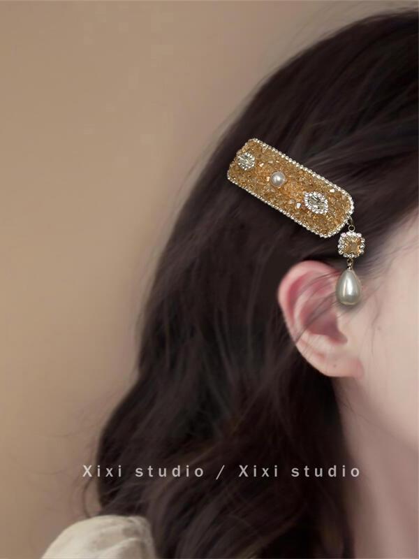甜漫千金!新中式珍珠吊坠发夹!高级感刘海夹精致水钻边夹盘发器