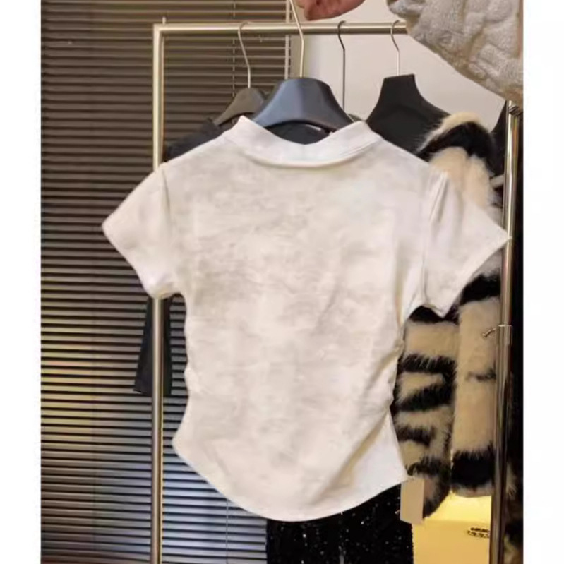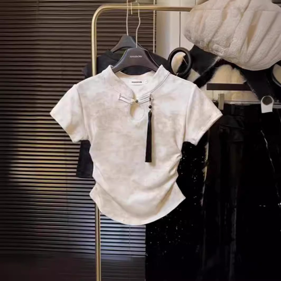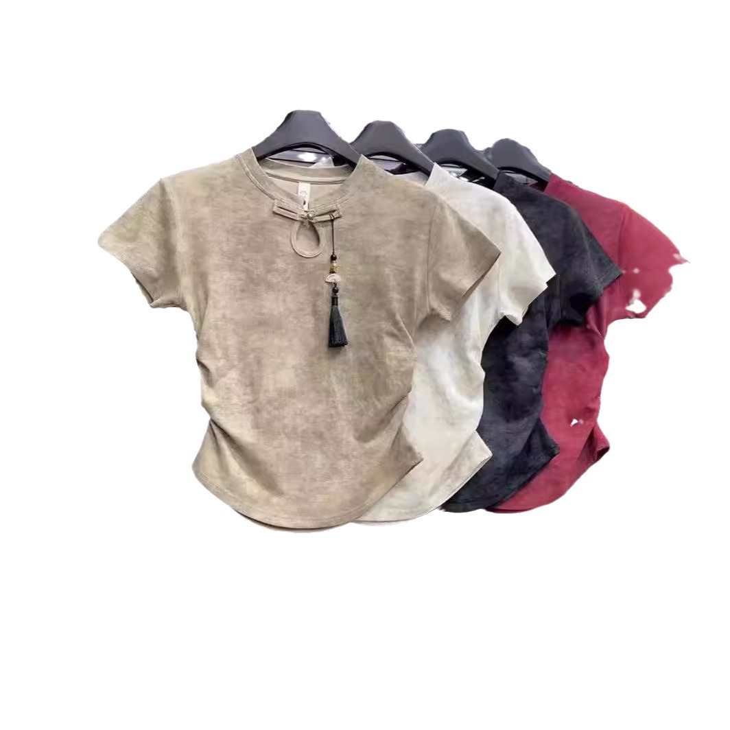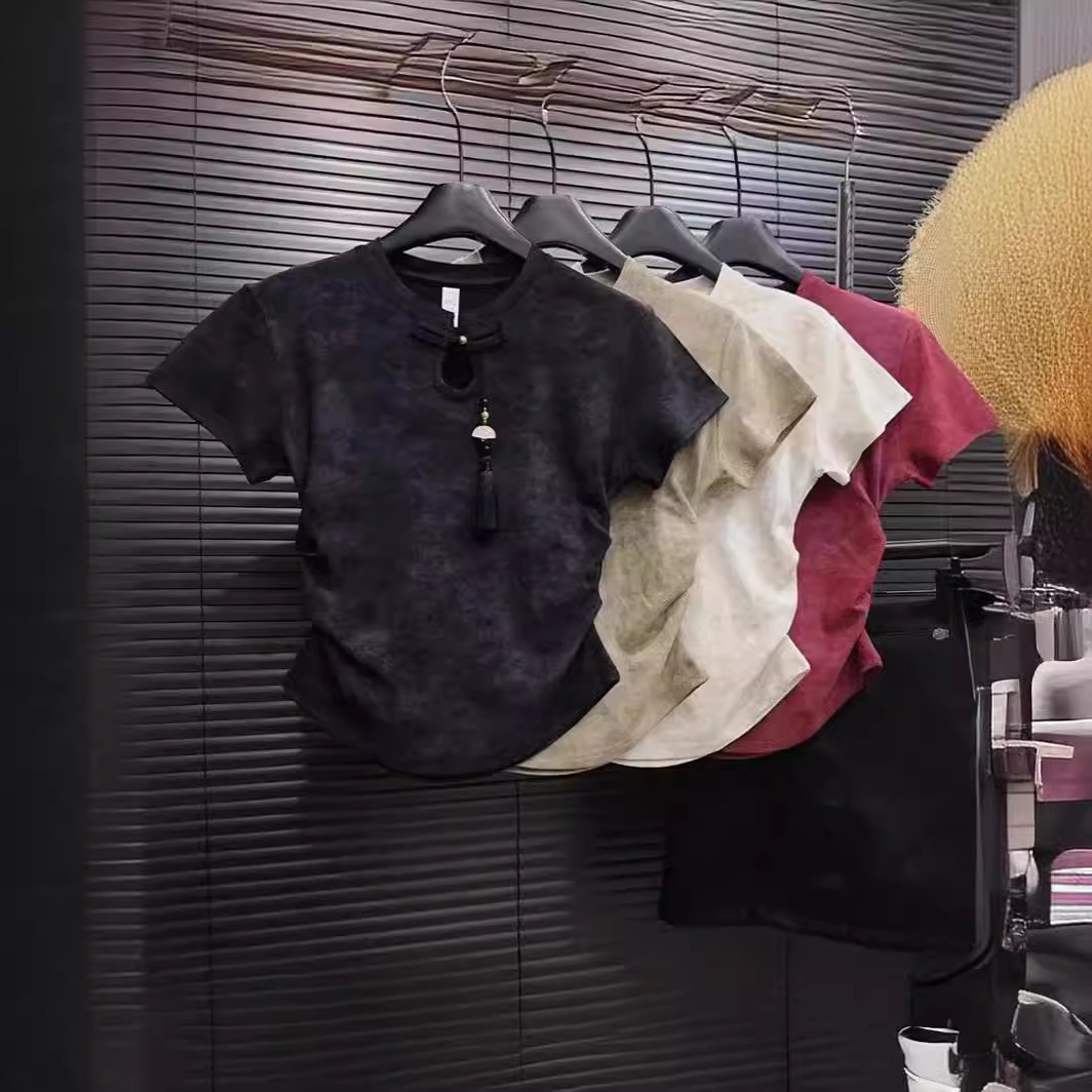 新中式国风盘扣晕染短袖T恤女2025年新款显瘦短款别致绝美小上衣