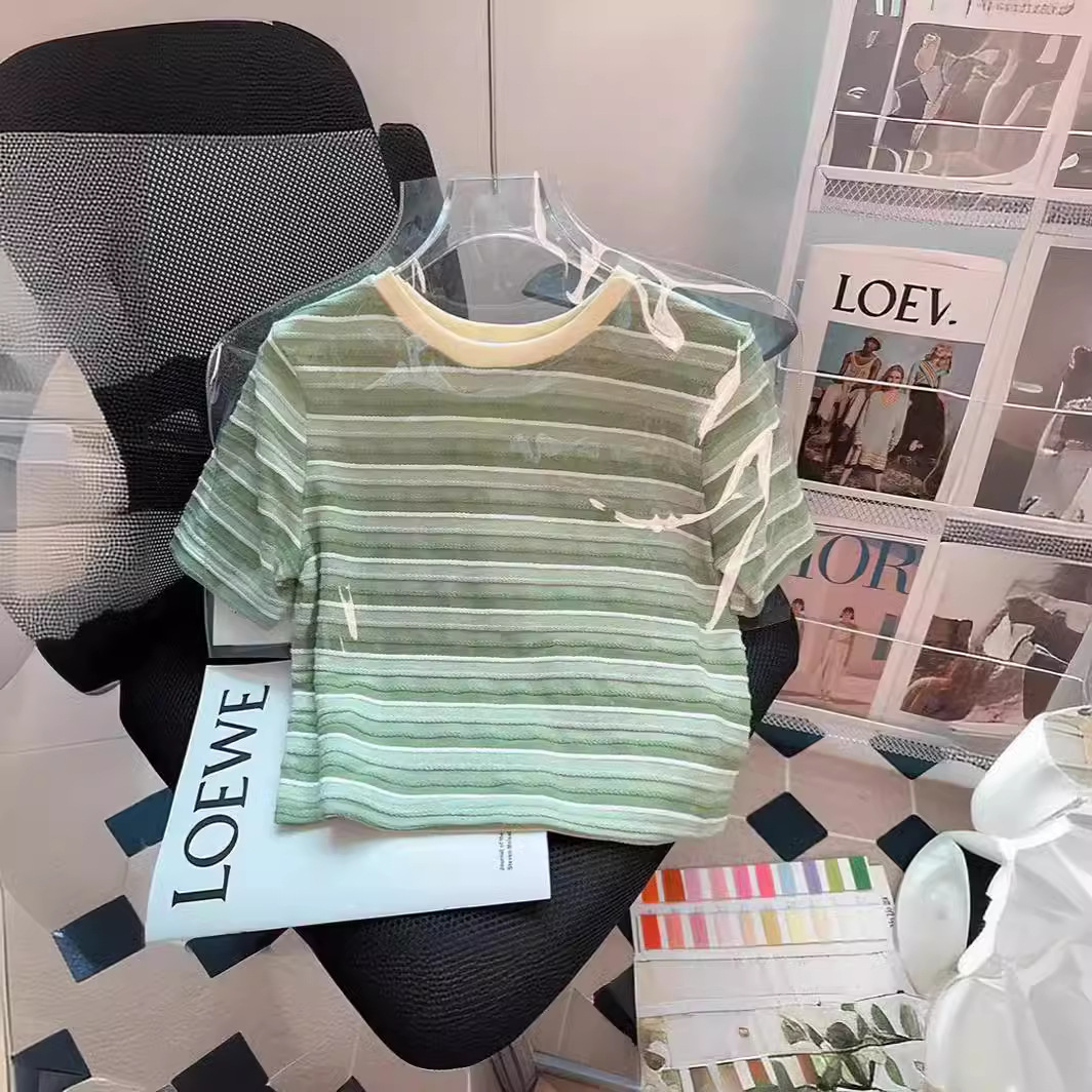 宽松短款t恤女夏薄款新款显瘦百搭条纹圆领打底短袖上衣ins潮