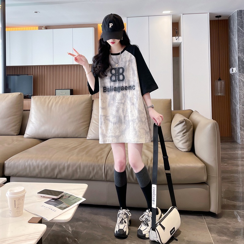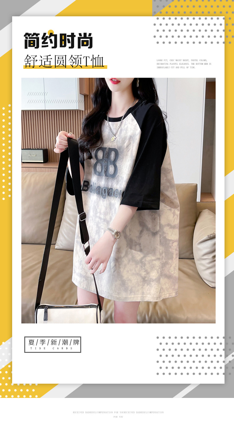 夏季新款韩版印花中长款短袖T恤女学生宽松上衣ins外贸女装潮