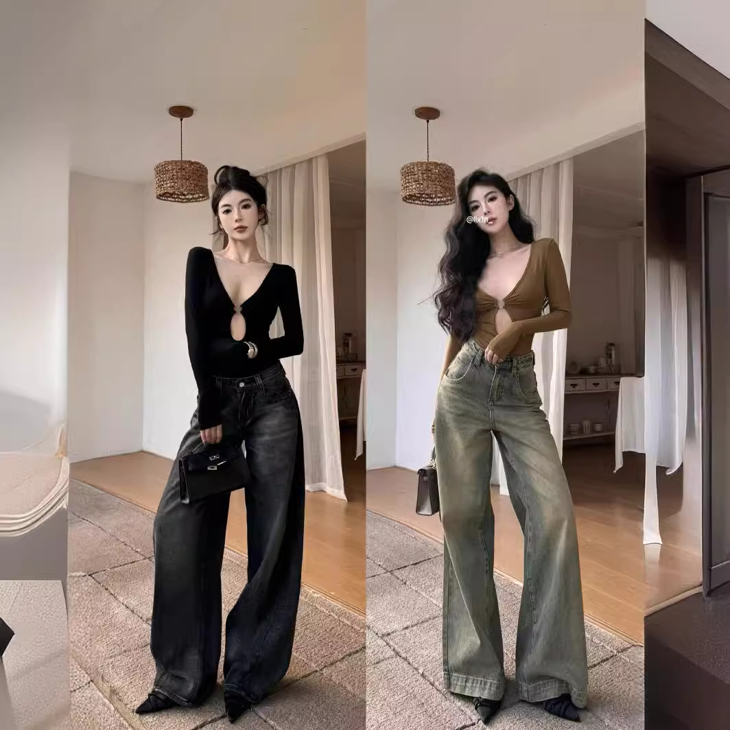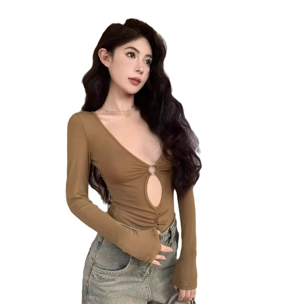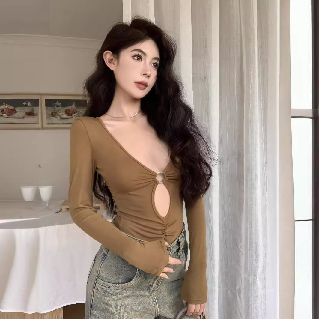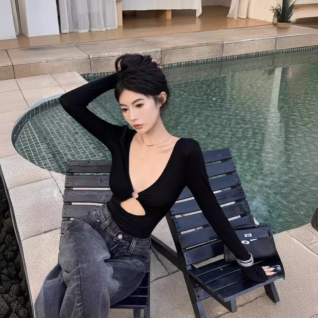 欧美风ins个性镂空收腰性感辣妹T恤百搭连体上衣修身长袖内搭