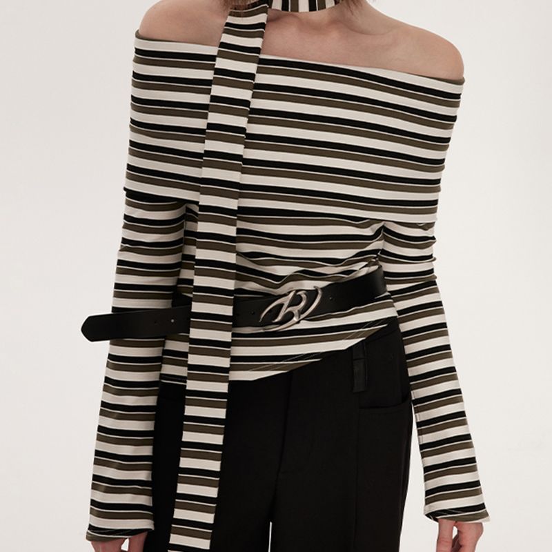 新款一字露肩设计感纯欲辣妹短款修身显瘦长袖T恤女上衣