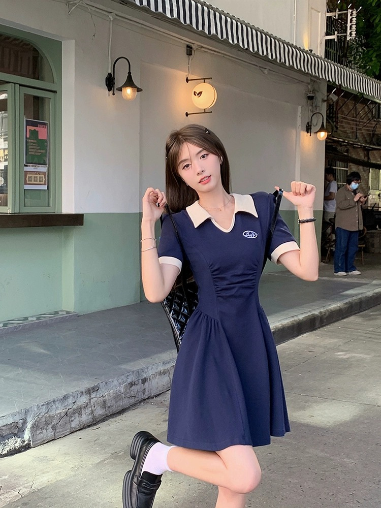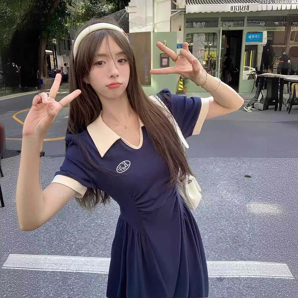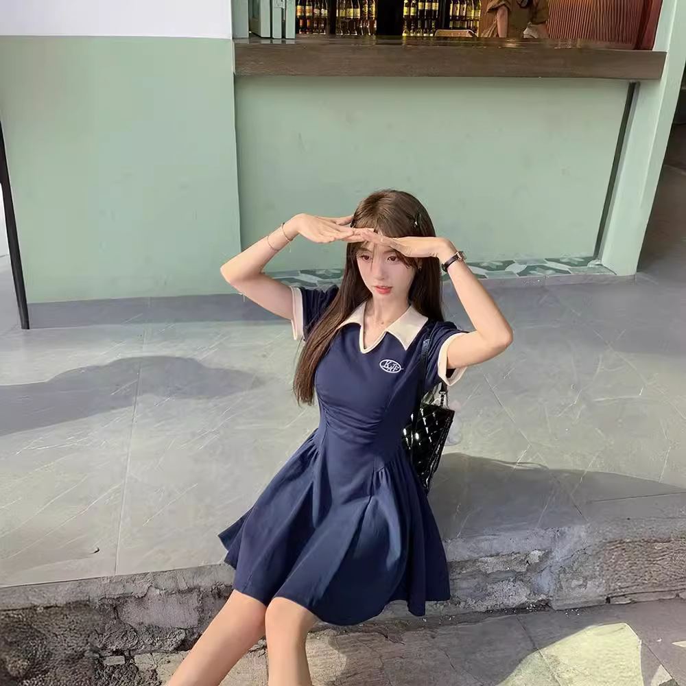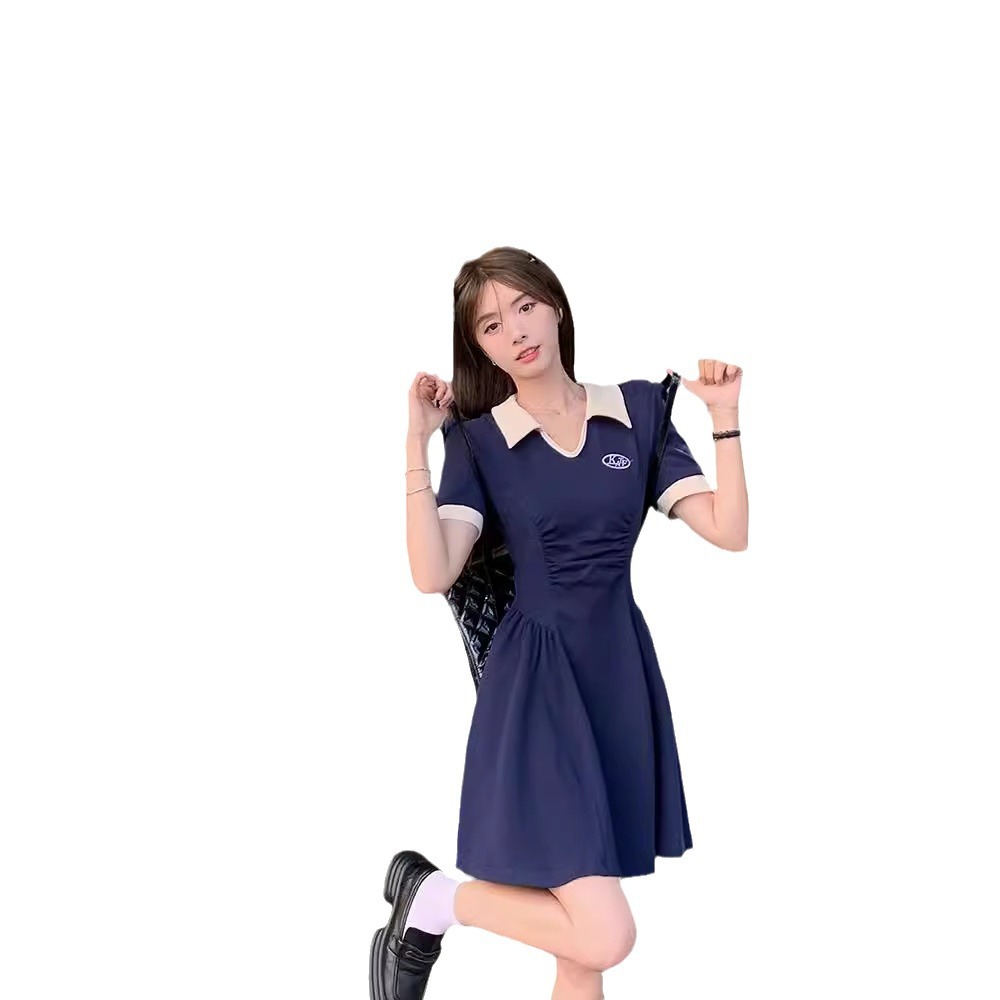 大码polo领连衣裙女2025夏季新款胖mm收腰A字显瘦遮肚减龄裙子