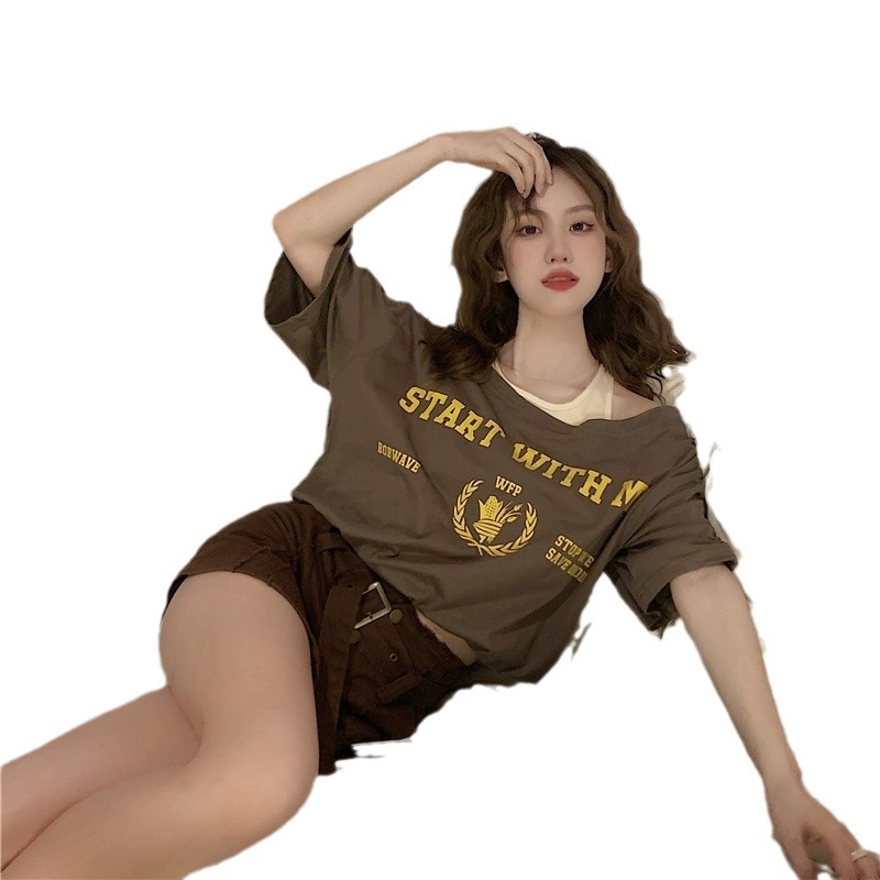 假两件短袖T恤女夏季美式复古高街设计感小众甜辣风宽松短款上衣