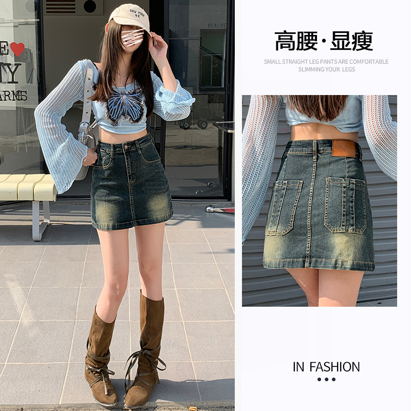 复古蓝灰色牛仔短裙女春夏季新款高腰显瘦小个子防走光a字半身裙