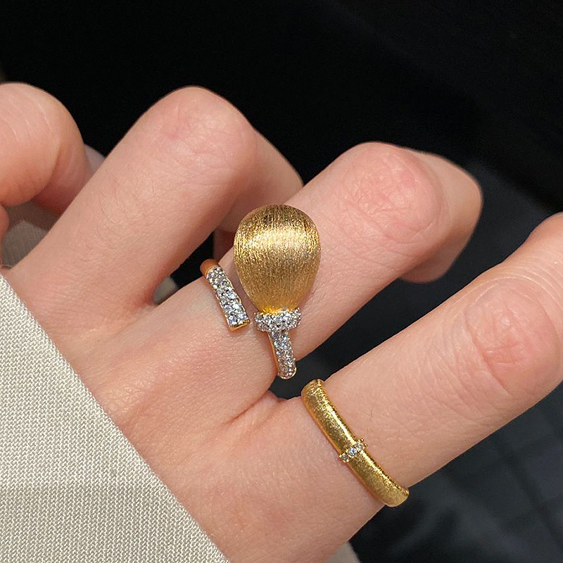 小红书爆款满钻爆闪松果戒指古法新中式可爱简约拉丝指环一件代发