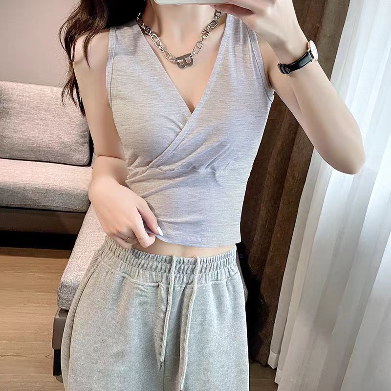 吊带背心女内搭设计感小众外穿短款无袖V领打底衫上衣网红露脐