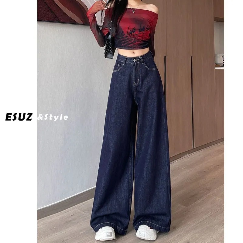 蓝复古阔腿牛仔裤女2025年春秋季新款高腰宽松垂感拖地直筒裤