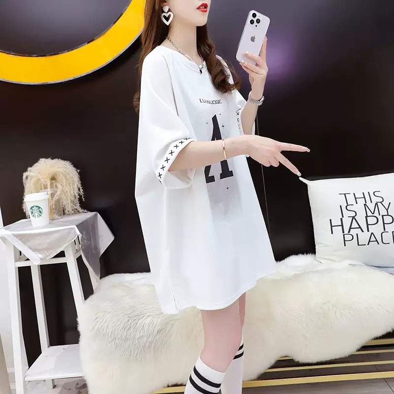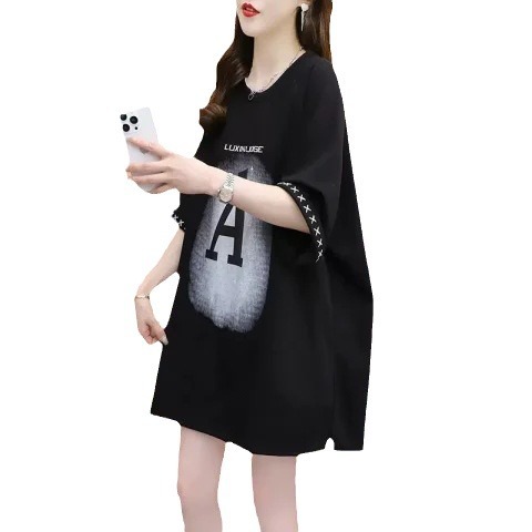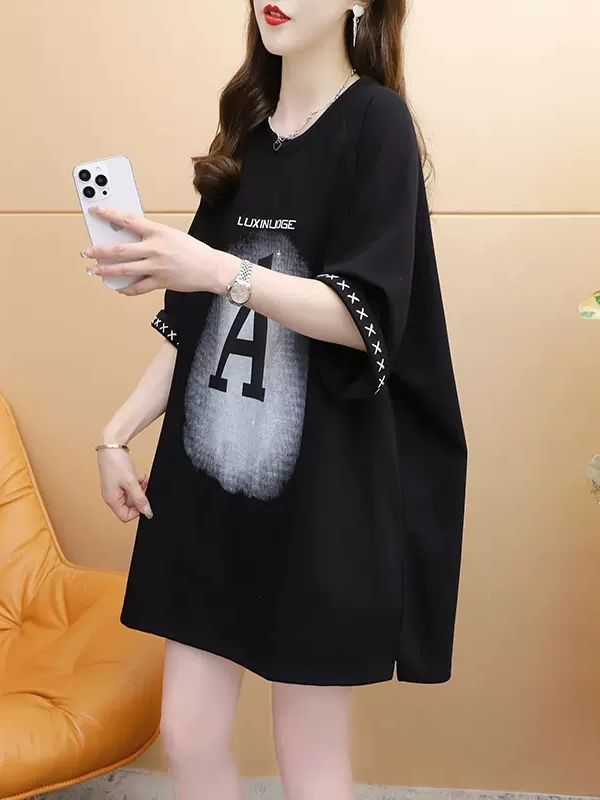 欧货大版中长款休闲短袖T恤女年新款夏季洋气宽松韩版上衣夏
