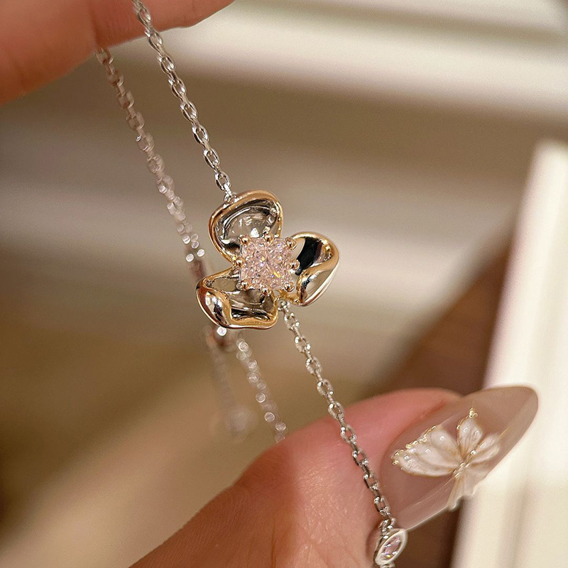 小红书同款棉花花朵手链女新款轻奢设计精致超闪花瓣锁骨链