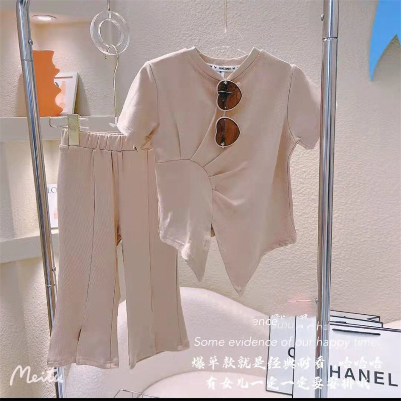 夏季新款儿童套装女童不规则短袖T恤上衣+休闲长裤两件套1138