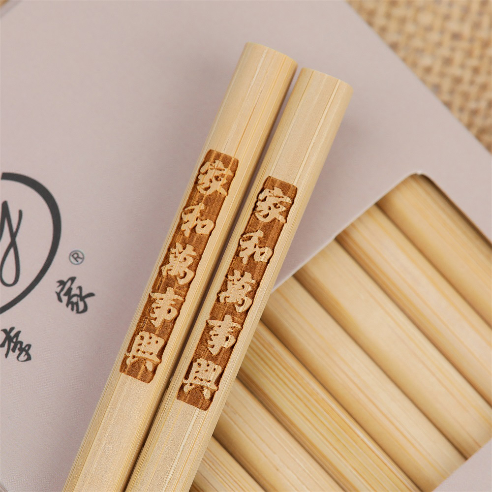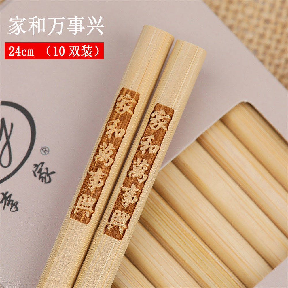 竹筷子家用高档无漆无蜡天然家庭装刻字餐具套装网红碳化
