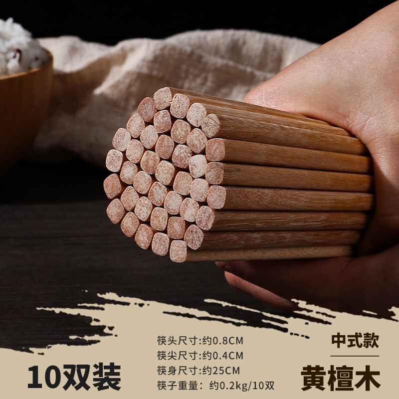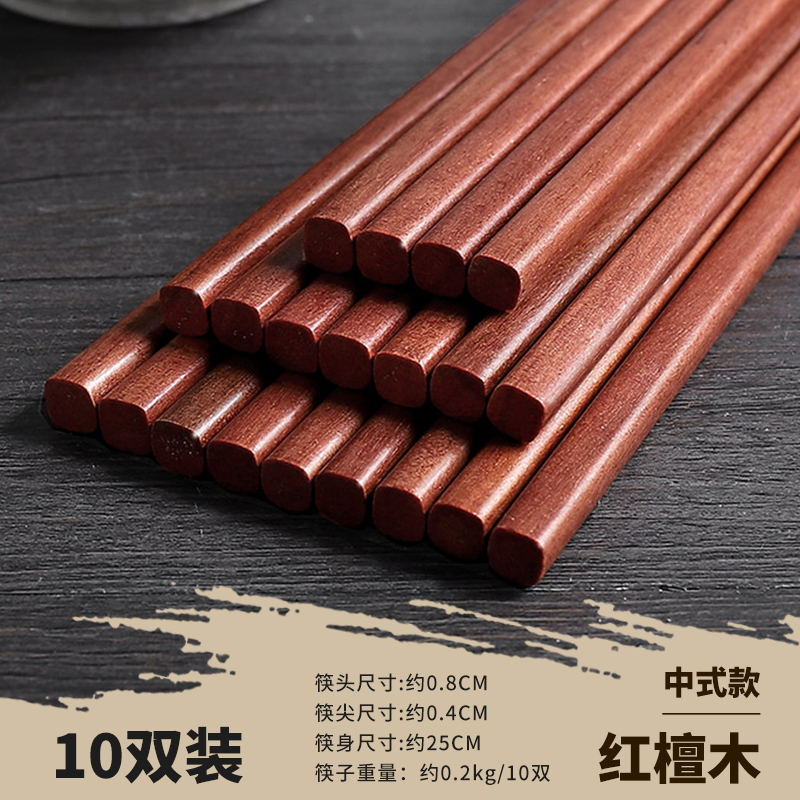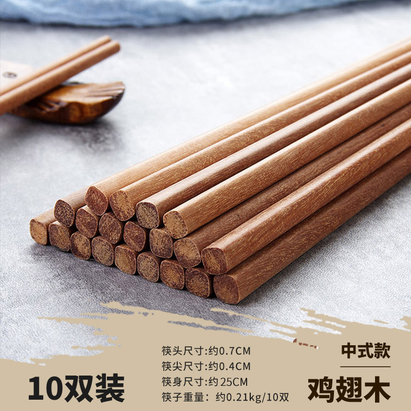 7M9K筷子家用红檀木餐具木质10双无漆无蜡新款鸡翅木快子
