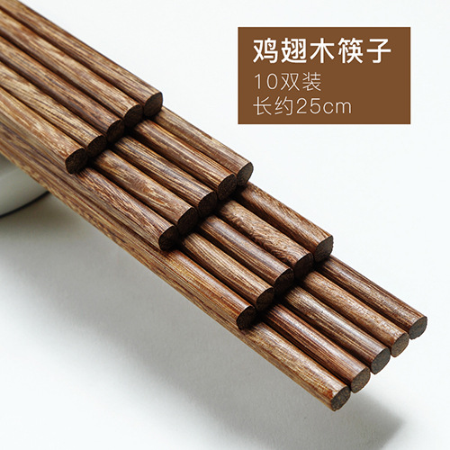 鸡翅木筷子家用天然无漆无蜡木质筷子实心双装耐高温家庭装木筷