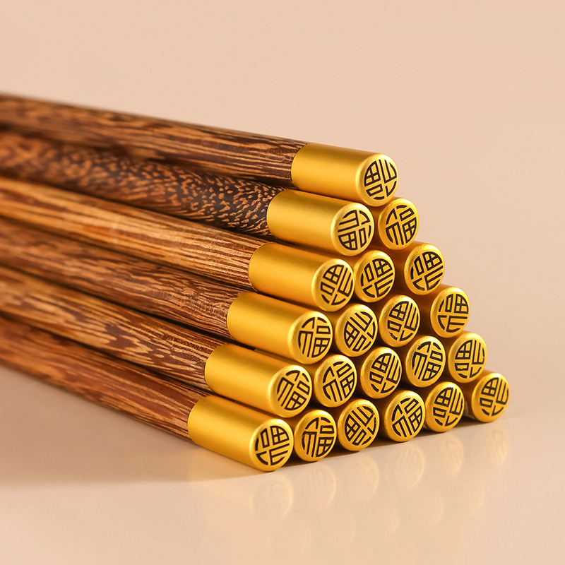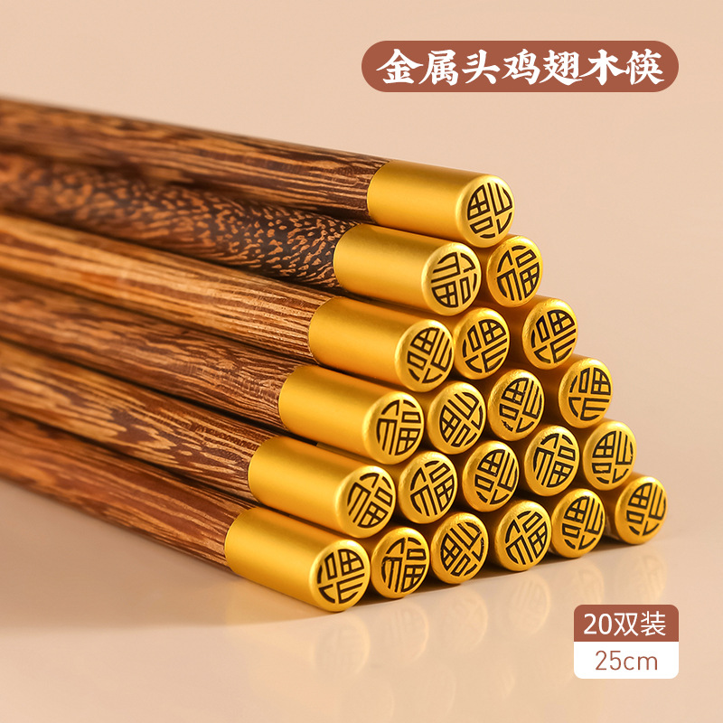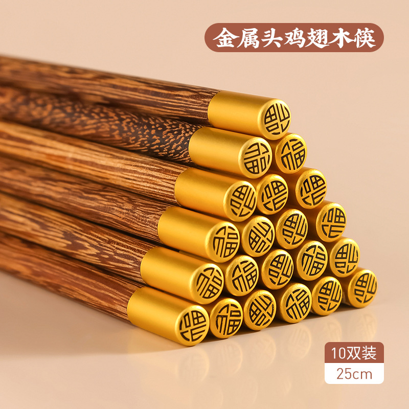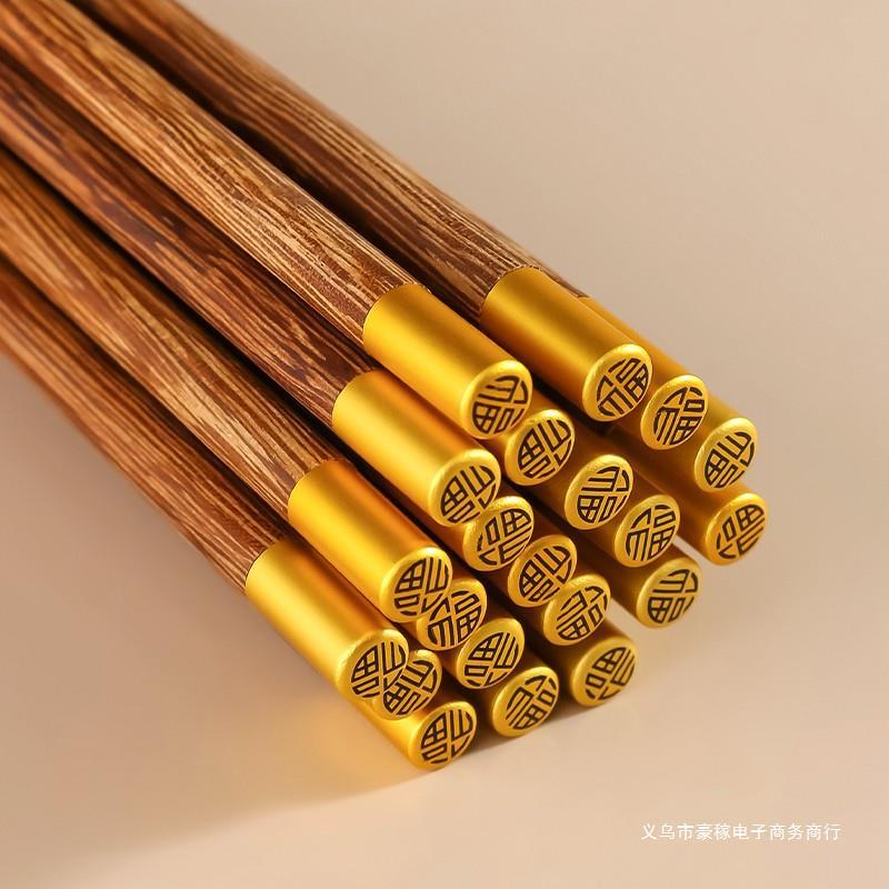 筷子家用鸡翅木筷无漆木质红木筷实木防滑防霉耐高温家庭筷颜值高