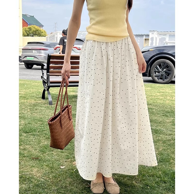 白色波点半身裙女夏季新款高腰显瘦a字伞裙小个子气质休闲百褶裙