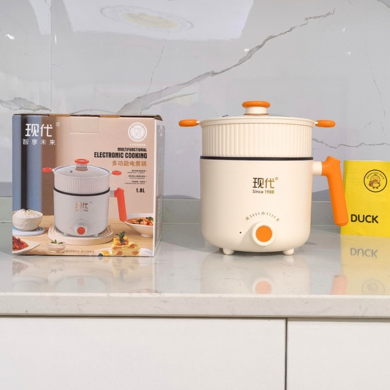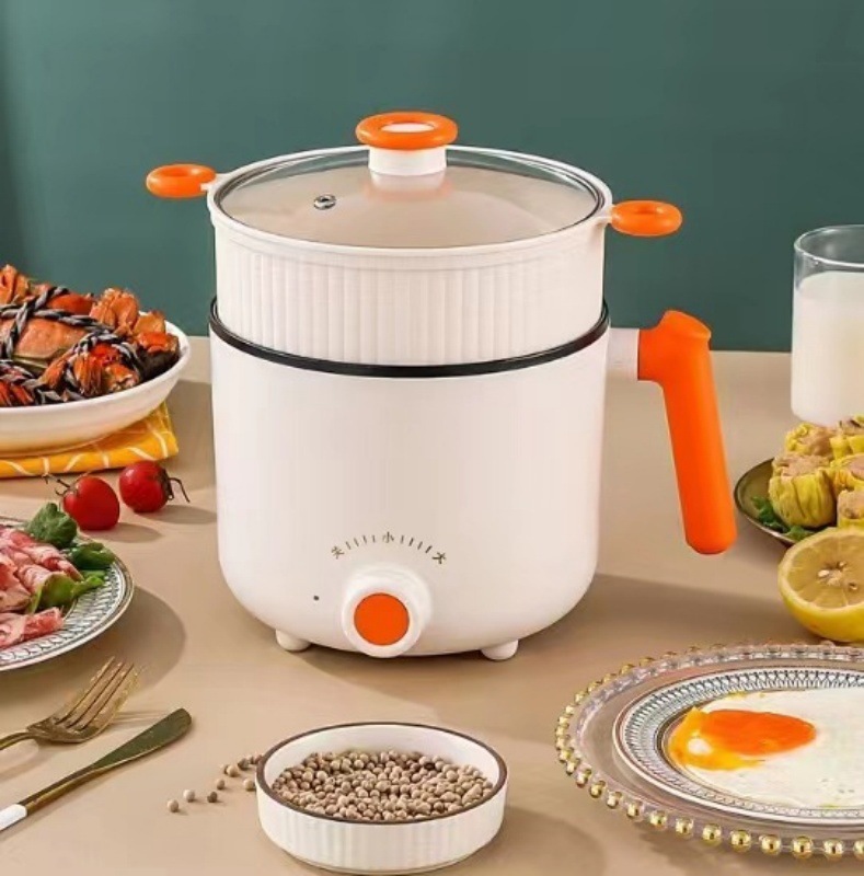 现代电煮锅学生宿舍泡面小电锅多功能家用带蒸笼一体式电热锅