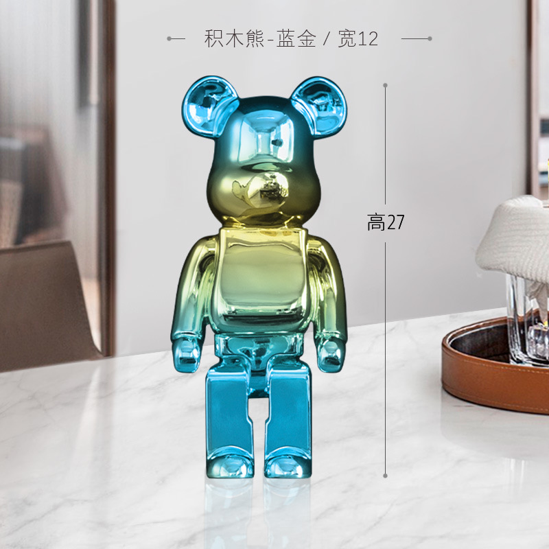 电镀大气套装摆件客厅电视酒柜子现代轻奢暴力熊积木熊装饰品