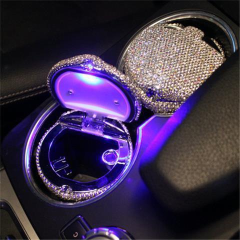 镶钻车载烟灰缸女创意个性有盖车用烟灰缸多功能通用汽车用品