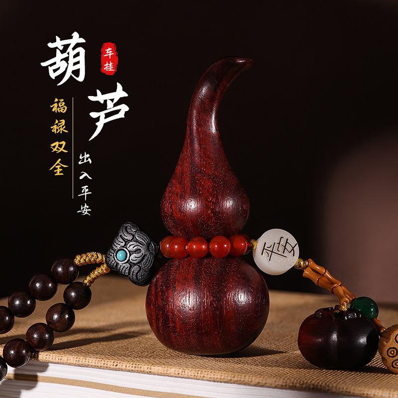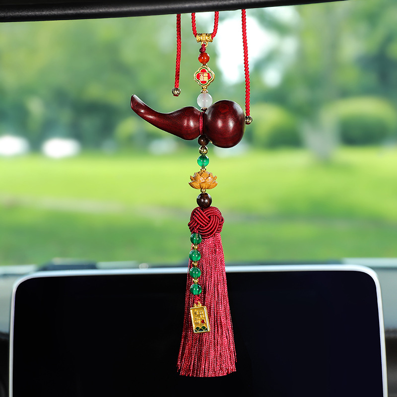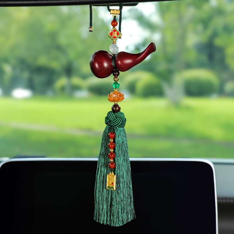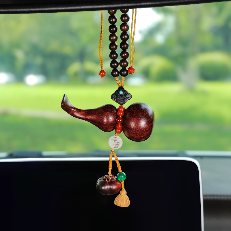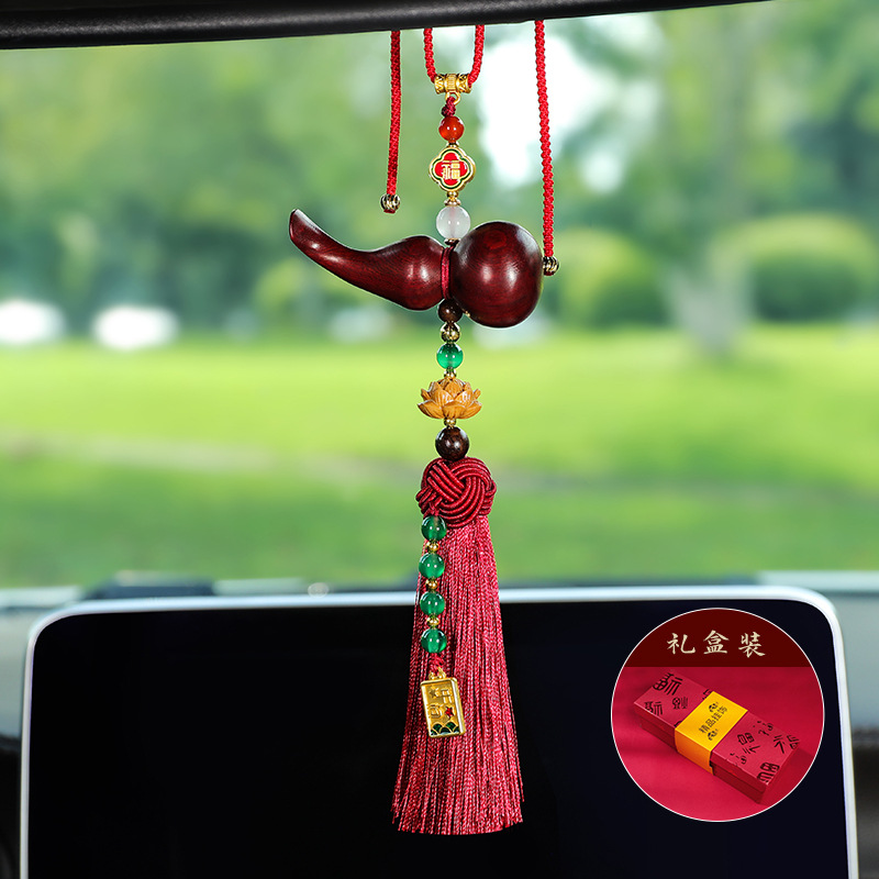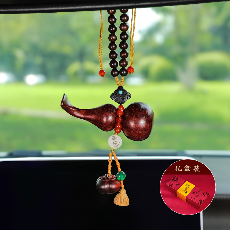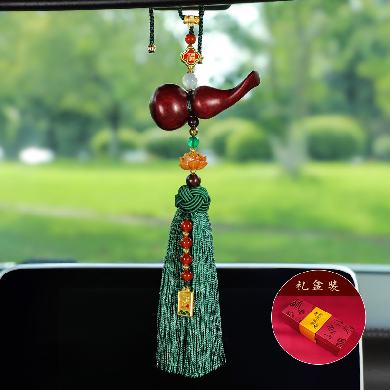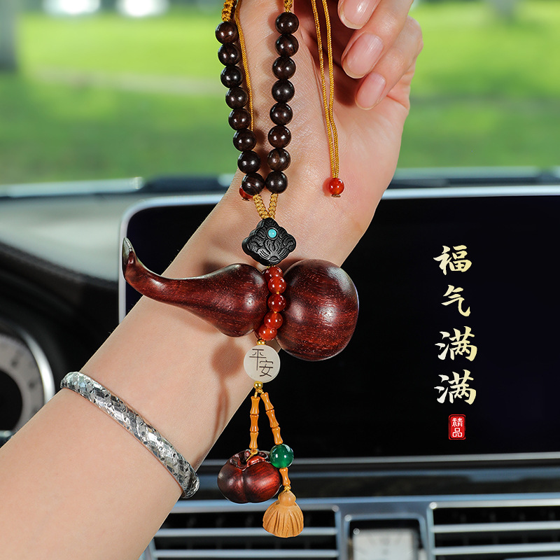 车载挂饰高档红檀葫芦一路平安符创意后视镜车挂汽车内饰