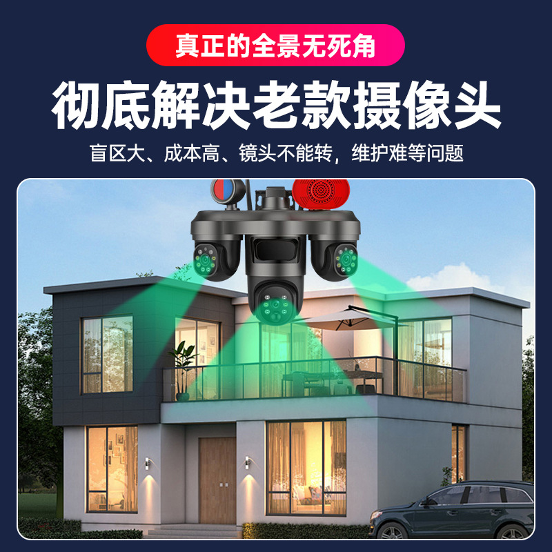 家用高清远程连手机360无死角室外夜视全彩三镜头无线监控摄像头