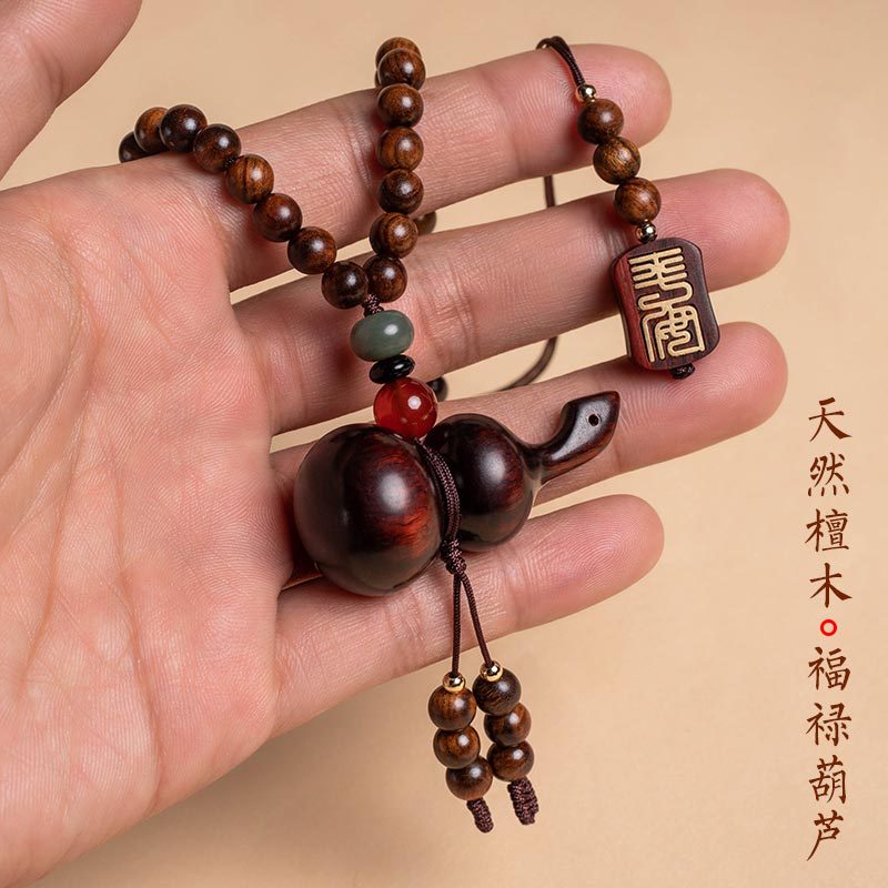 檀木葫芦汽车挂件紫檀车内吊坠出入平安符车载后视镜挂饰
