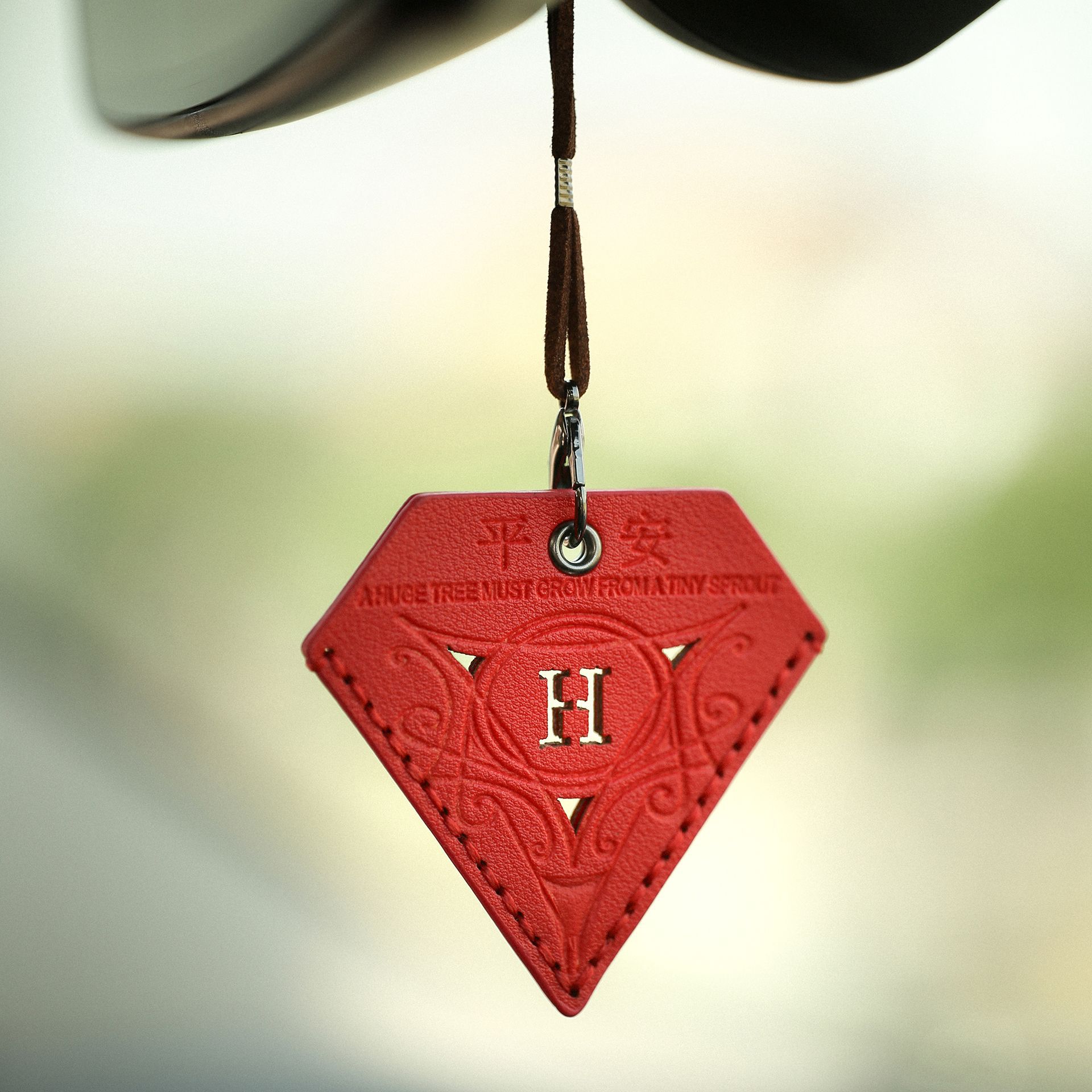 汽车挂件三角平安符袋皮革后视镜挂饰高档汽车饰品新款创意