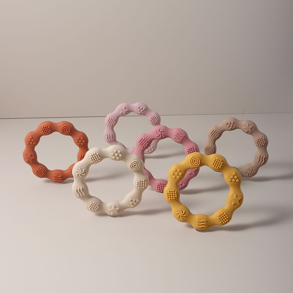 可爱圆圈牙胶咬咬乐婴儿环形玩具防吃手安抚磨牙棒磨牙点硅胶宝宝