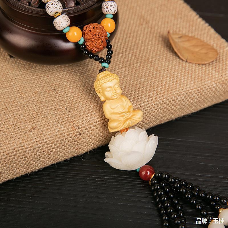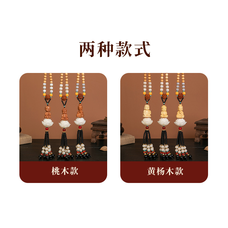 黄杨木佛佑一生汽车挂件车内吊饰品桃木莲花平安符车载后视镜吊坠