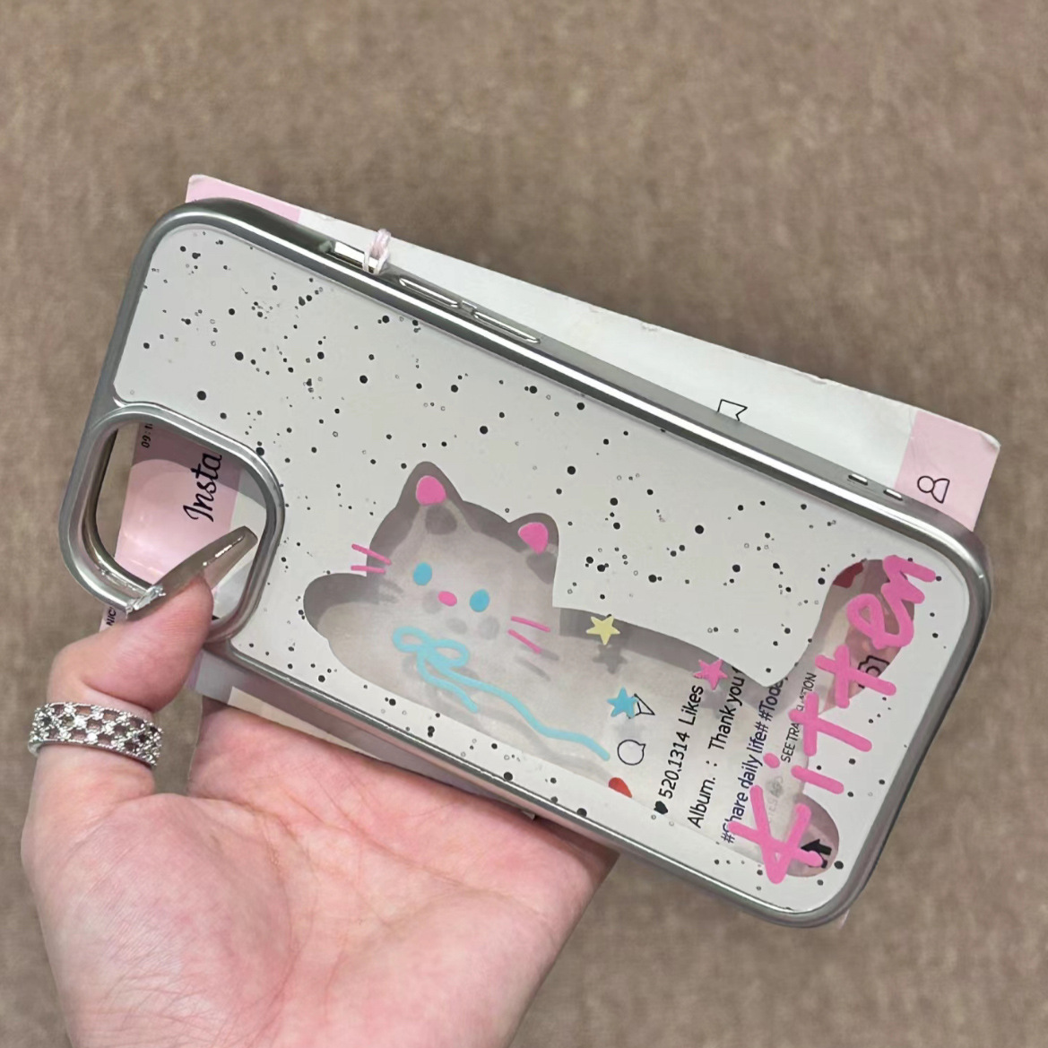 ins风金灿灿Kitty猫适用iPhone15promax苹果14手机壳13电镀12全包